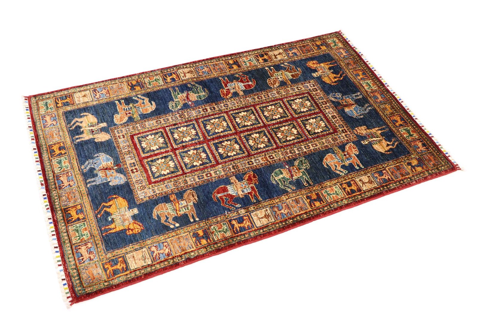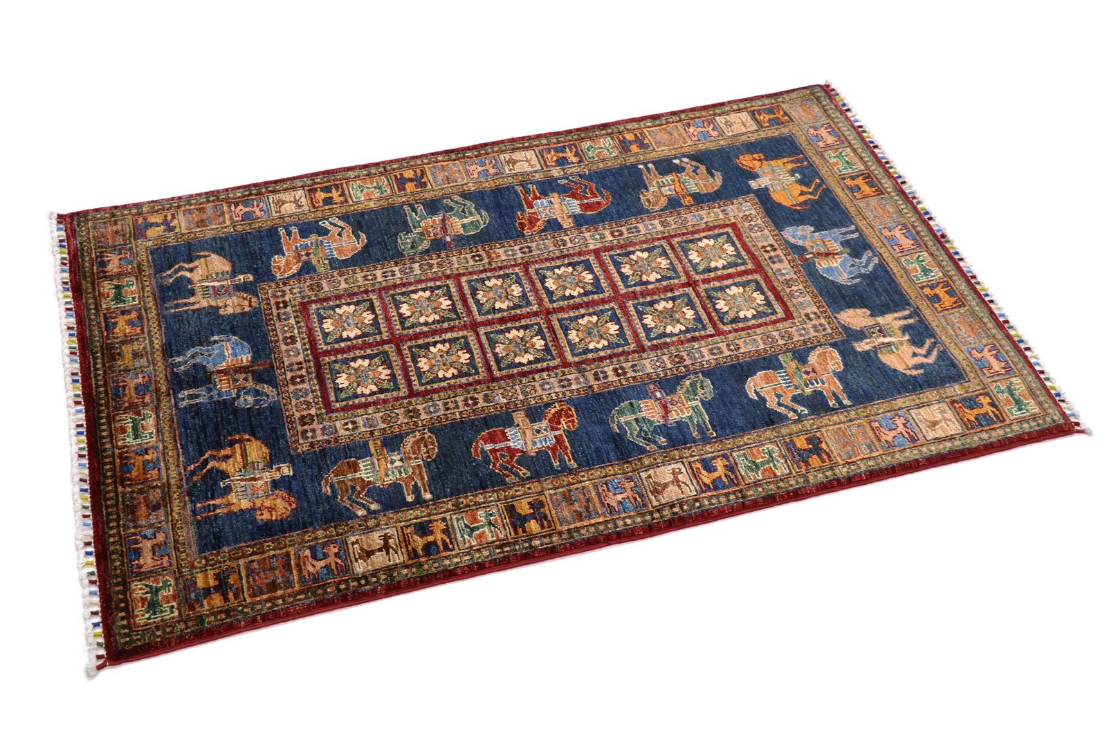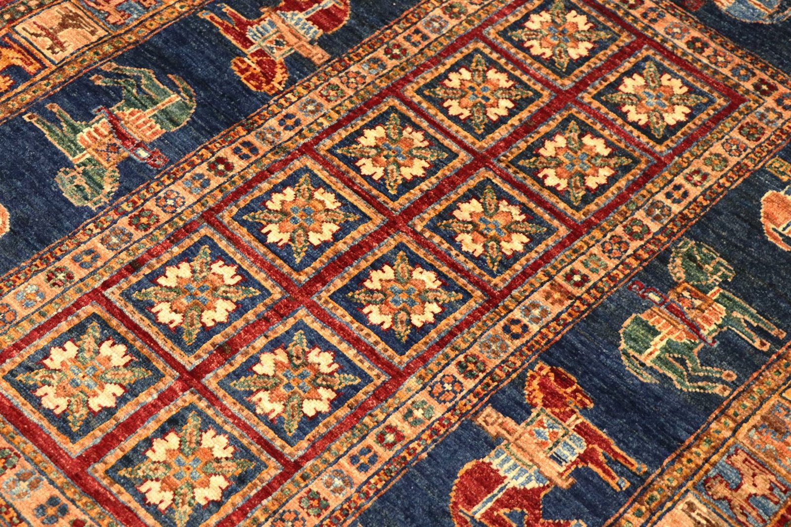 Khorjin carpets are made from hand-spun sheep’s wool of the highest quality, particularly in Iran, Afghanistan and Pakistan. Before the actual knotting process, the wool is spun by hand, which guarantees its exceptional quality. Wool is known for its natural, extremely durable properties such as dirt repellency and thermal insulation. In addition, wool is incredibly soft and gives the carpet a natural sheen. This traditional manufacturing method combines craftsmanship with the advantages of a material that has proven itself over centuries, both functionally and aesthetically. The Khorjin carpet thus embodies the craftsmanship and timeless beauty of handmade textiles made from natural raw materials.