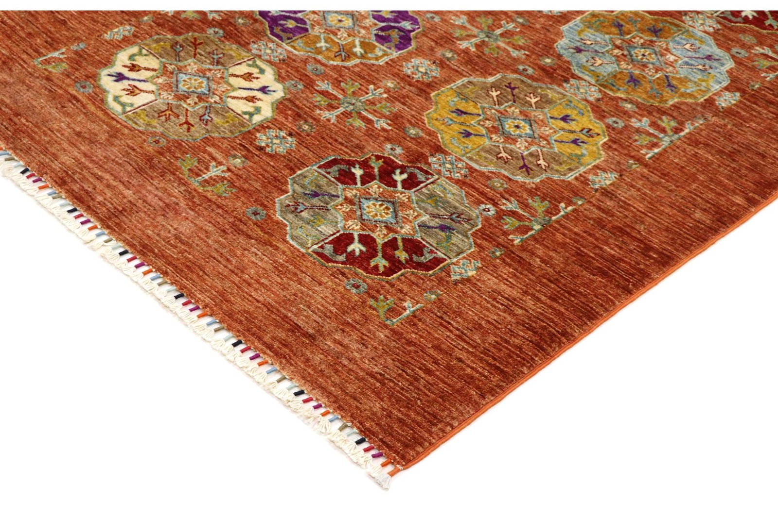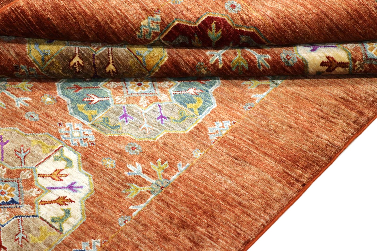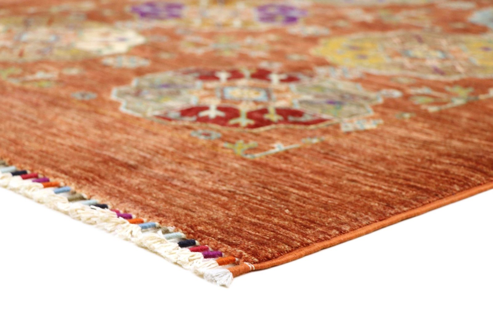 Khorjin carpets are made from hand-spun sheep’s wool of the highest quality, primarily in Iran, Afghanistan and Pakistan. The wool is spun by hand before the carpet is actually knotted. Wool is known for its natural and extremely durable properties, such as dirt repellency and thermal insulation. It is also exceptionally soft and gives the carpet a natural sheen. This traditional manufacturing method combines craftsmanship with the advantages of a material that has proven itself over centuries, both functionally and aesthetically. The Khorjin carpet thus represents a combination of cultural heritage, craftsmanship and the timeless elegance of natural wool.