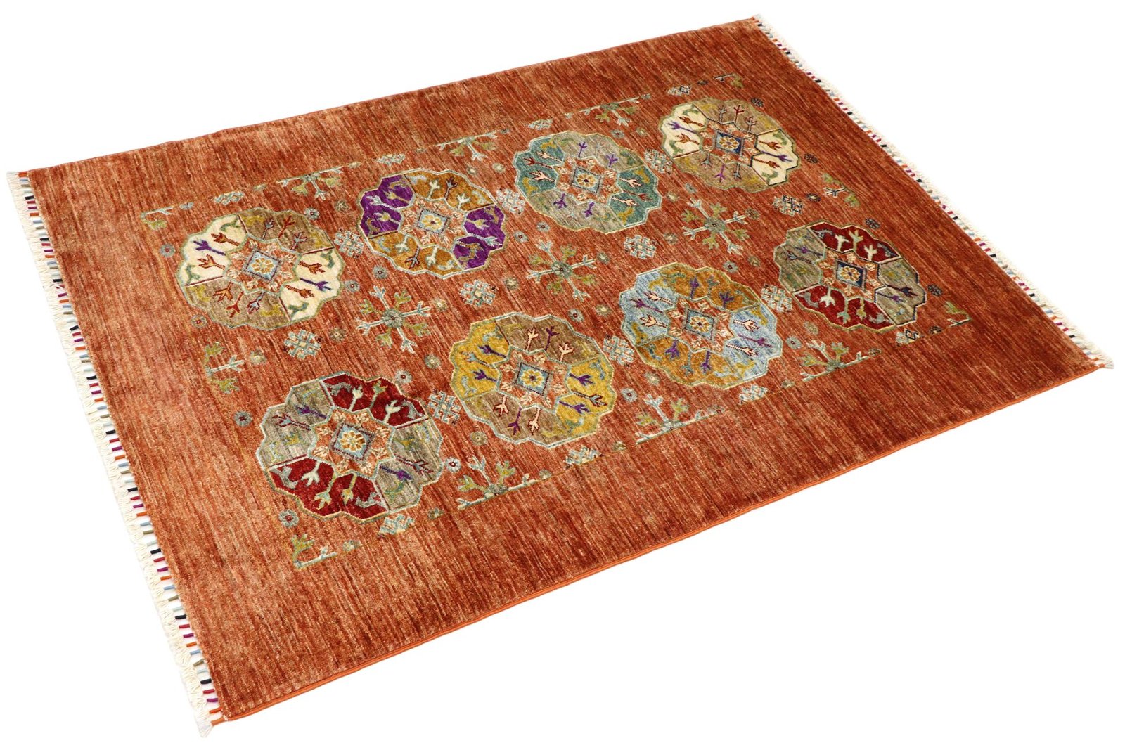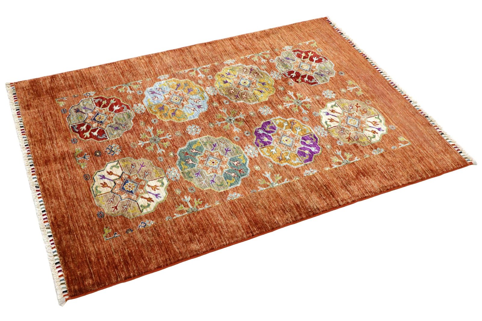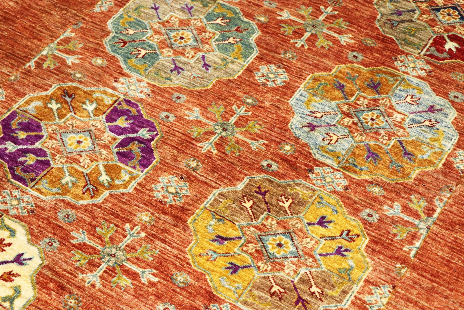 Khorjin carpets are made from hand-spun sheep’s wool of the highest quality, primarily in Iran, Afghanistan and Pakistan. The wool is spun by hand before the carpet is actually knotted. Wool is known for its natural and extremely durable properties, such as dirt repellency and thermal insulation. It is also exceptionally soft and gives the carpet a natural sheen. This traditional manufacturing method combines craftsmanship with the advantages of a material that has proven itself over centuries, both functionally and aesthetically. The Khorjin carpet thus represents a combination of cultural heritage, craftsmanship and the timeless elegance of natural wool.