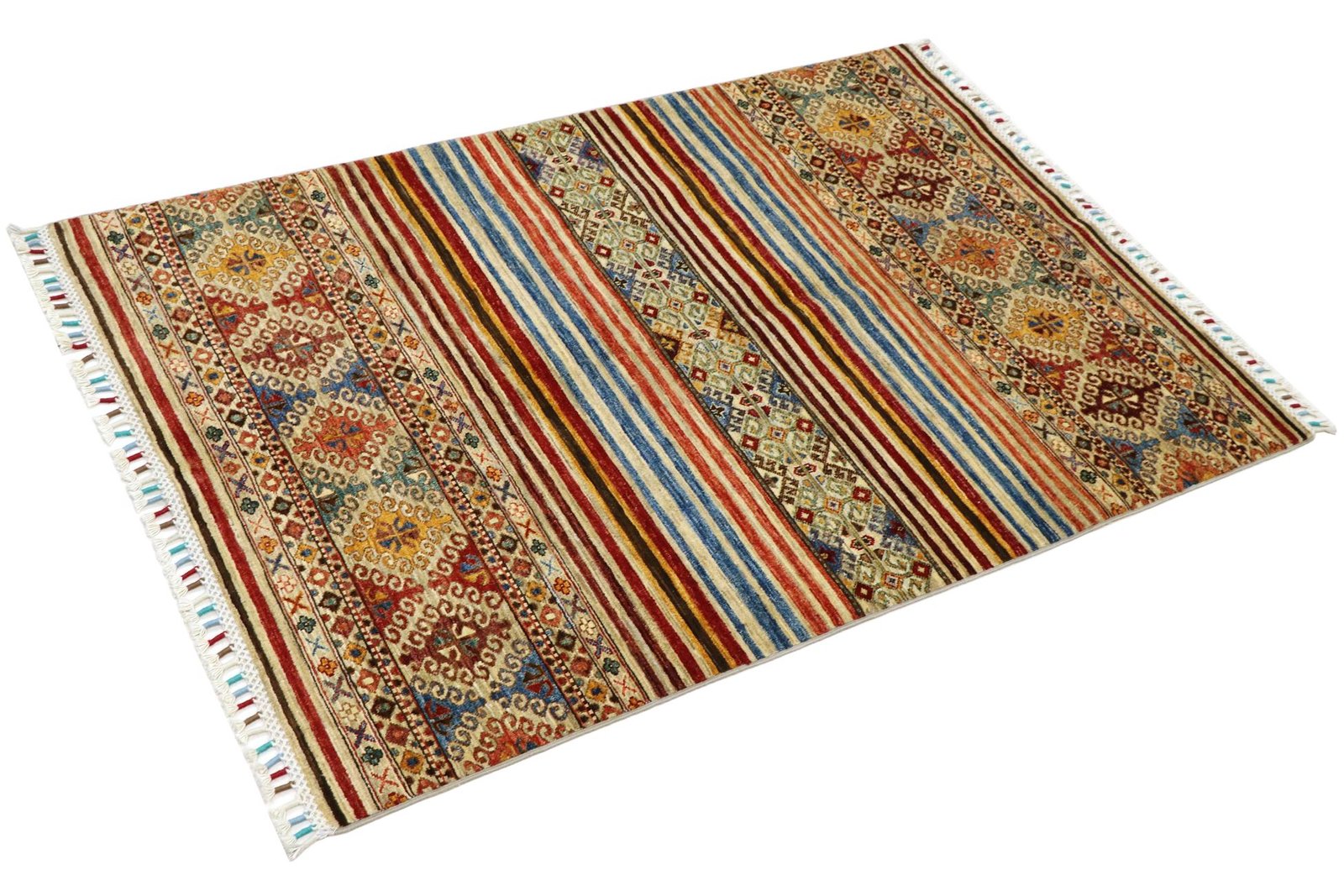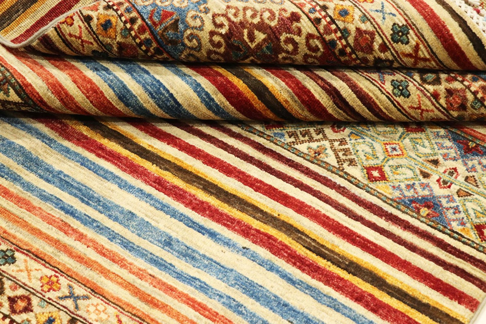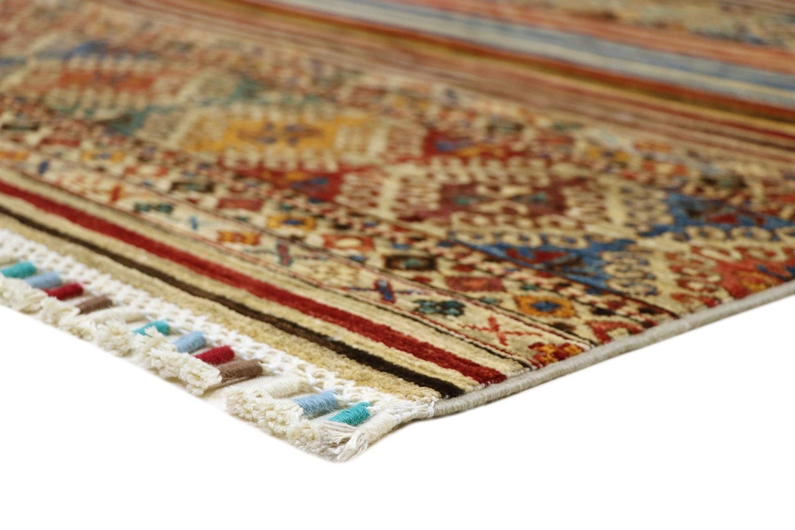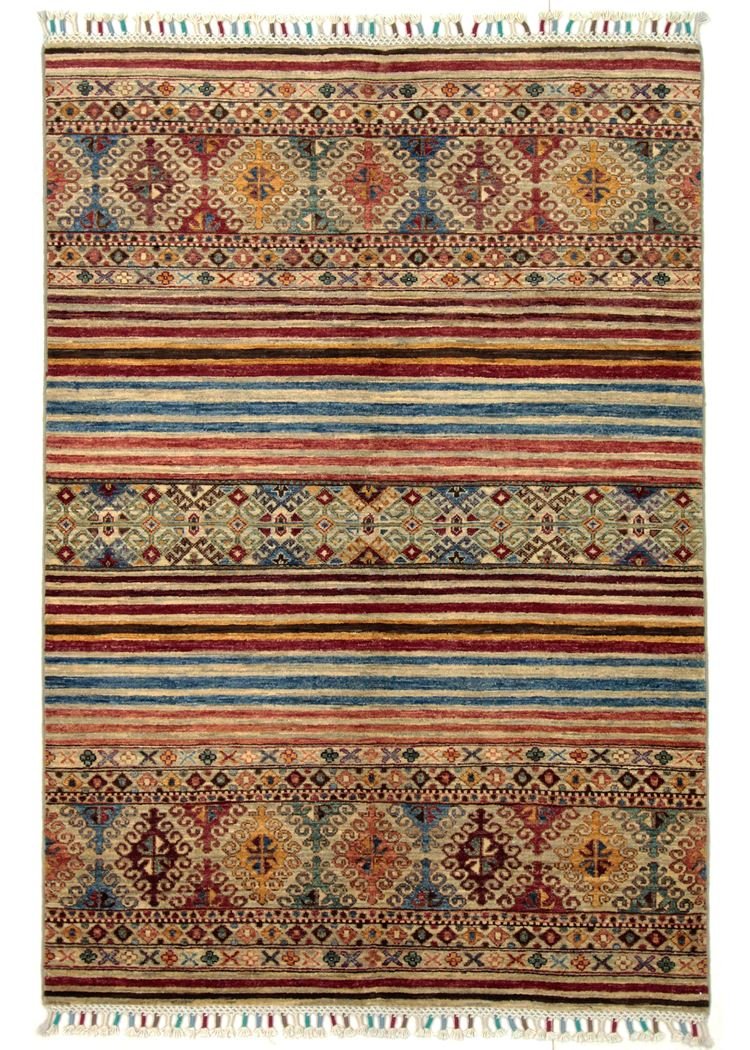 Khorjin carpets are made from hand-spun sheep’s wool of the highest quality, primarily in Iran, Afghanistan and Pakistan. The wool is spun by hand before the carpet is knotted and is characterised by its natural, extremely durable properties, such as dirt repellency and thermal insulation. In addition, wool is exceptionally soft and has a natural sheen. This traditional manufacturing method combines craftsmanship with the advantages of a material that has proven itself over centuries, both functionally and aesthetically. The Khorjin carpet thus embodies craftsmanship and the timeless elegance of natural wool.