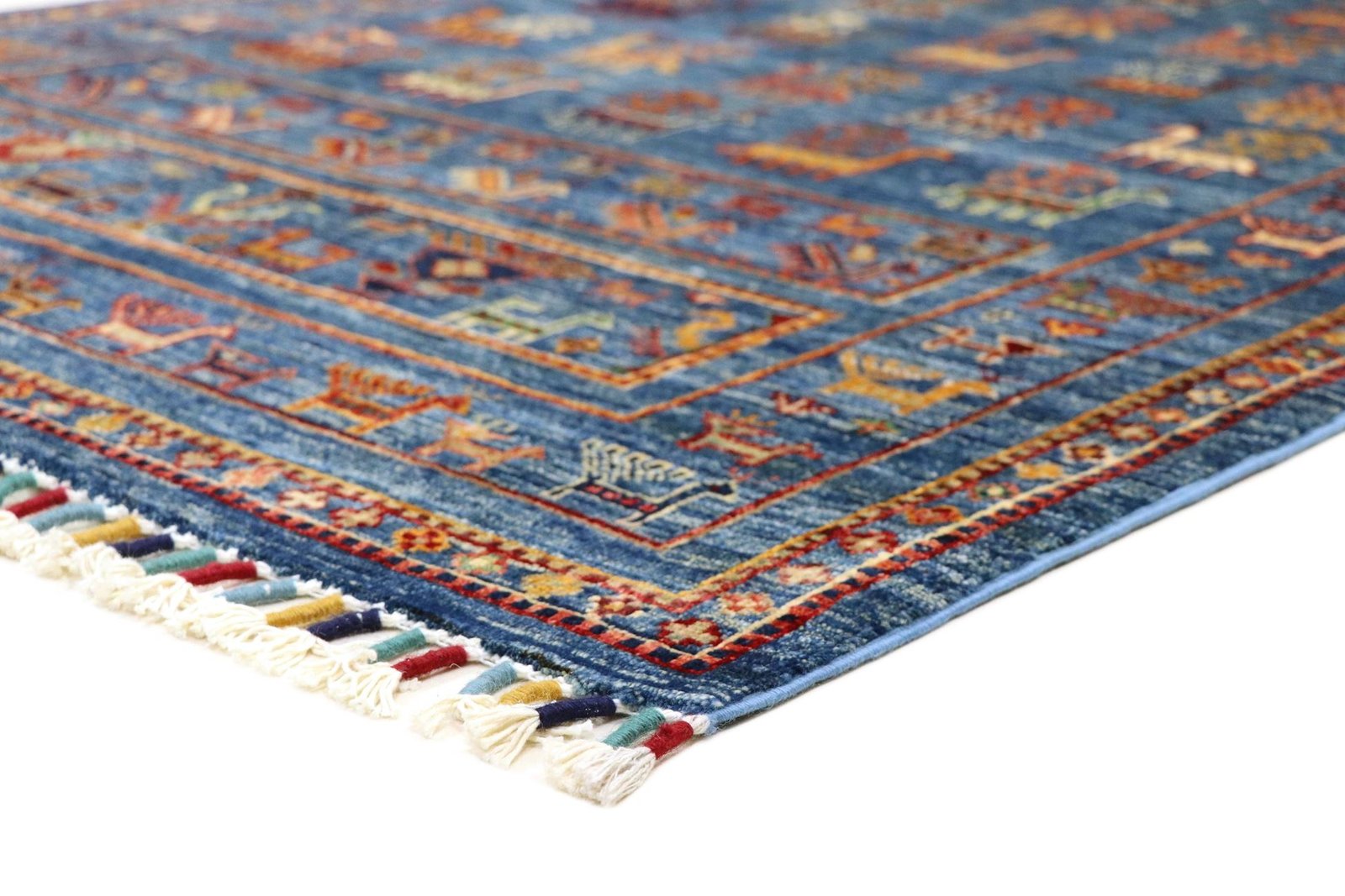 Khorjin carpets are made from the highest quality hand-spun sheep’s wool, particularly in Iran, Afghanistan and Pakistan, where wool is still spun by hand before the knotting process begins. Wool is a natural, extremely durable material with dirt-repellent and heat-insulating properties. It is also incomparably soft and gives the carpet a natural sheen. This traditional manufacturing method combines craftsmanship with the advantages of a material that has proven itself over centuries, both functionally and aesthetically. The Khorjin carpet thus stands for craftsmanship and the timeless elegance of natural materials.