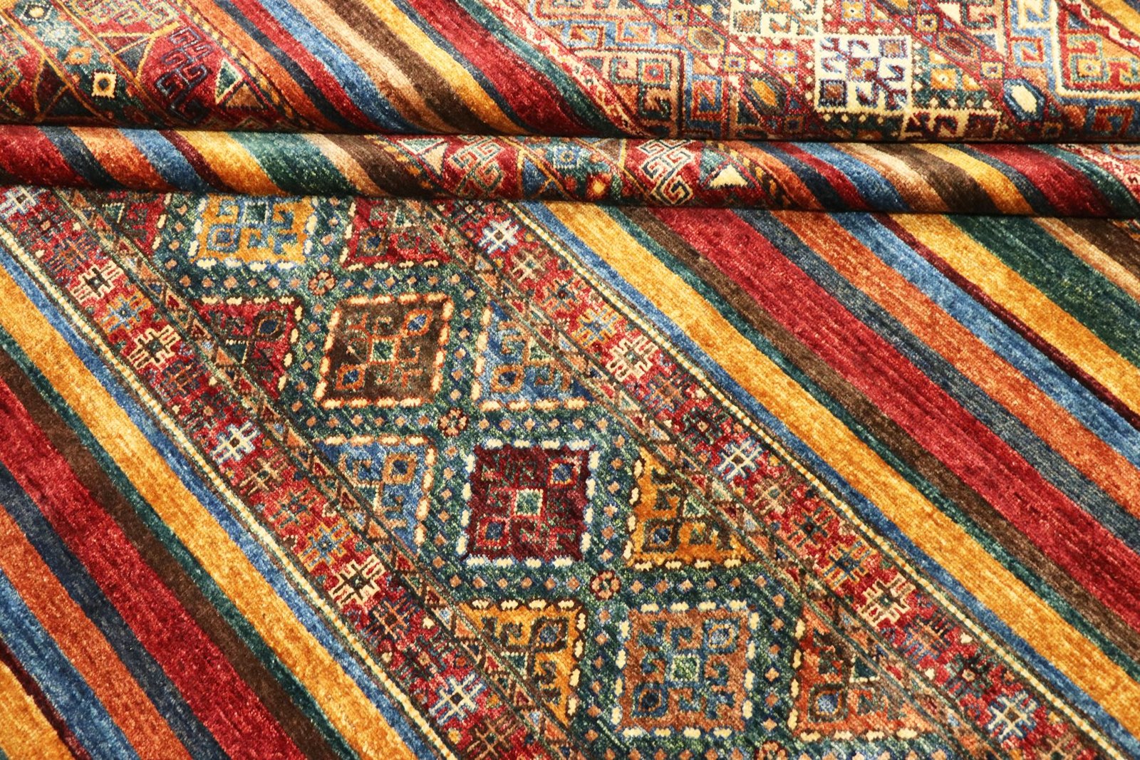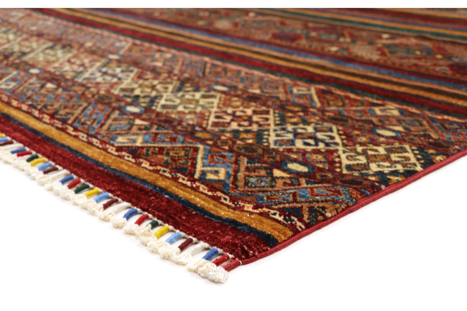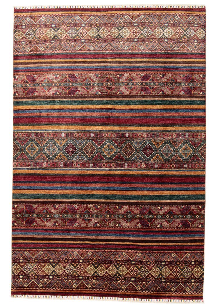 The Khorjin rug is a masterpiece made from the highest quality hand-spun sheep’s wool. This traditional craft is mainly practised in Iran, Afghanistan and Pakistan, where the wool is spun by hand before the actual knotting process begins. The wool is known for its natural durability and has been valued for centuries. Its dirt-repellent and heat-insulating properties make it particularly suitable for carpets. In addition, wool is exceptionally soft and gives the carpet a natural sheen. Each Khorjin carpet is unique, characterised by the craftsmanship of its artisans and the quality of the materials used. It combines tradition, craftsmanship and the timeless beauty of natural materials to create a unique work of art for the living space.