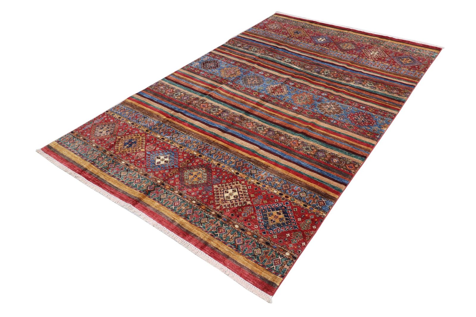 Khorjin carpets are made from high-quality, hand-spun sheep’s wool, mainly in Iran, Afghanistan and Pakistan. The wool is traditionally spun by hand, giving the carpet exceptional properties such as dirt repellency and thermal insulation. At the same time, it is particularly soft and has a natural sheen. These characteristics make wool a preferred material for carpets, which has proven itself over centuries. The Khorjin carpet combines precise craftsmanship with the advantages of a functional and aesthetically appealing material. It represents the traditional craftsmanship and cultural significance of the regions in which it is produced.
