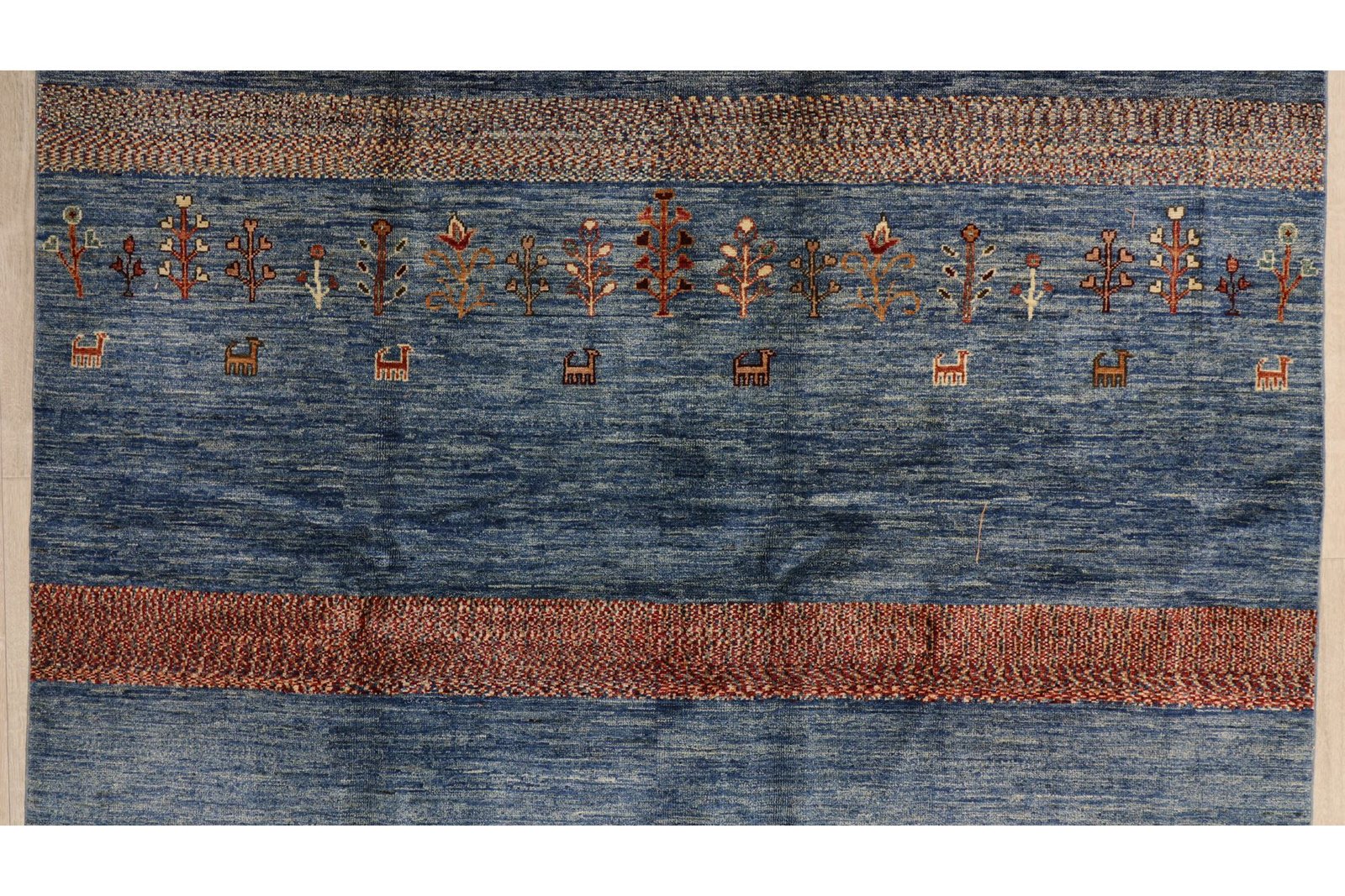 The Khorjin carpet is made from high-quality, hand-spun sheep’s wool, mainly in Iran, Afghanistan and Pakistan. This wool is traditionally spun by hand before the carpet is knotted. Wool is known for its natural, durable properties such as dirt repellency and thermal insulation. It is also exceptionally soft and gives the carpet a natural sheen. These properties make wool a preferred material for carpets, which has proven itself over centuries. The Khorjin carpet combines precise craftsmanship with the advantages of a functional and aesthetically appealing material, thus reflecting the traditional craftsmanship and cultural significance of the regions.