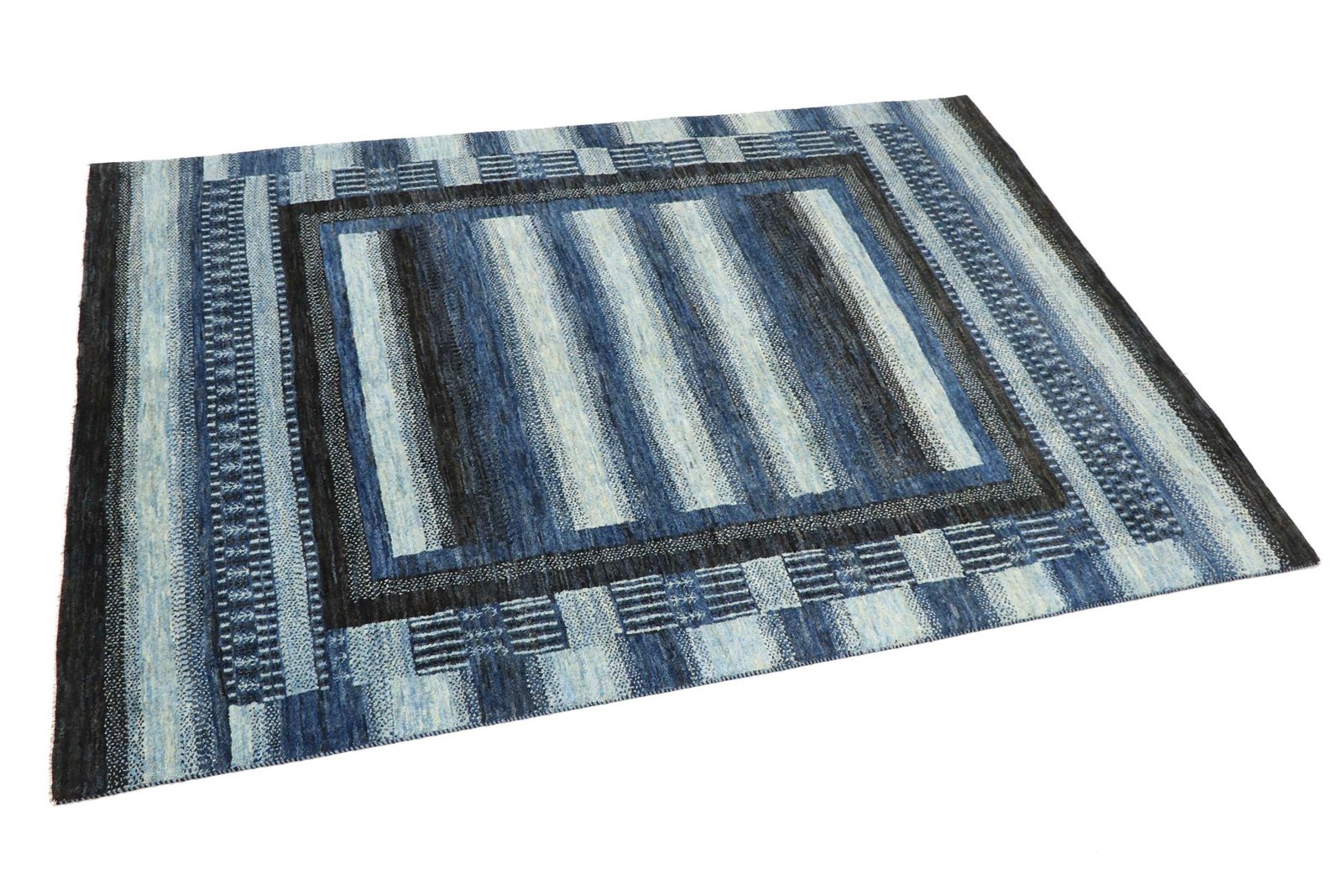 Loom Lori-Teppiche werden in Indien auf einem breiten Webstuhl handgewebt. Der Begriff „Gabbeh“ bedeutet auf Farsi „roh“ und bezieht sich auf einen einfachen, rustikalen Teppich. Sie erfreuen sich seit den frühen 1990er Jahren zunehmender Beliebtheit, da sie eine entspanntere, volkstümlich inspirierte Alternative zu den Perserteppichen bieten, die typischerweise mit traditioneller Innenarchitektur in Verbindung gebracht werden. Gabbeh-Teppiche zeichnen sich durch einen dicken, luxuriösen Flor, eine große Farbvielfalt und kräftige, geometrische Muster aus. Die Muster können entweder abstrakt oder gegenständlich sein und zeigen oft Tiere oder Menschen. Gabbeh-Teppiche bestehen in der Regel aus Wolle, einige bestehen jedoch auch aus Baumwolle oder anderen Materialien. Die Größen reichen von kleinen Matten bis hin zu großen Teppichen und können in jedem Raum des Hauses verwendet werden.
