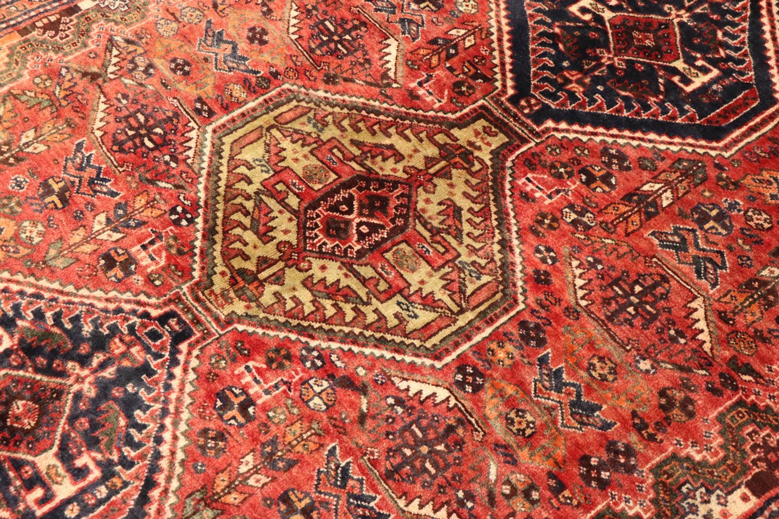 Ghashghai carpets are among the most outstanding nomadic carpets in Iran, known for their vibrant colours and patterns. They are made from pure wool using the “wool-on-wool” technique and captivate with their traditional designs and natural colours. Particularly prized in the Orient and Europe, they are ideal for contemporary interiors. Their ease of repair and skilful use of colour make them perfect for modern designs. Ghashghai carpets embody centuries-old craftsmanship that adapts to current design preferences and trends, making them a preferred choice for aesthetically demanding spaces.