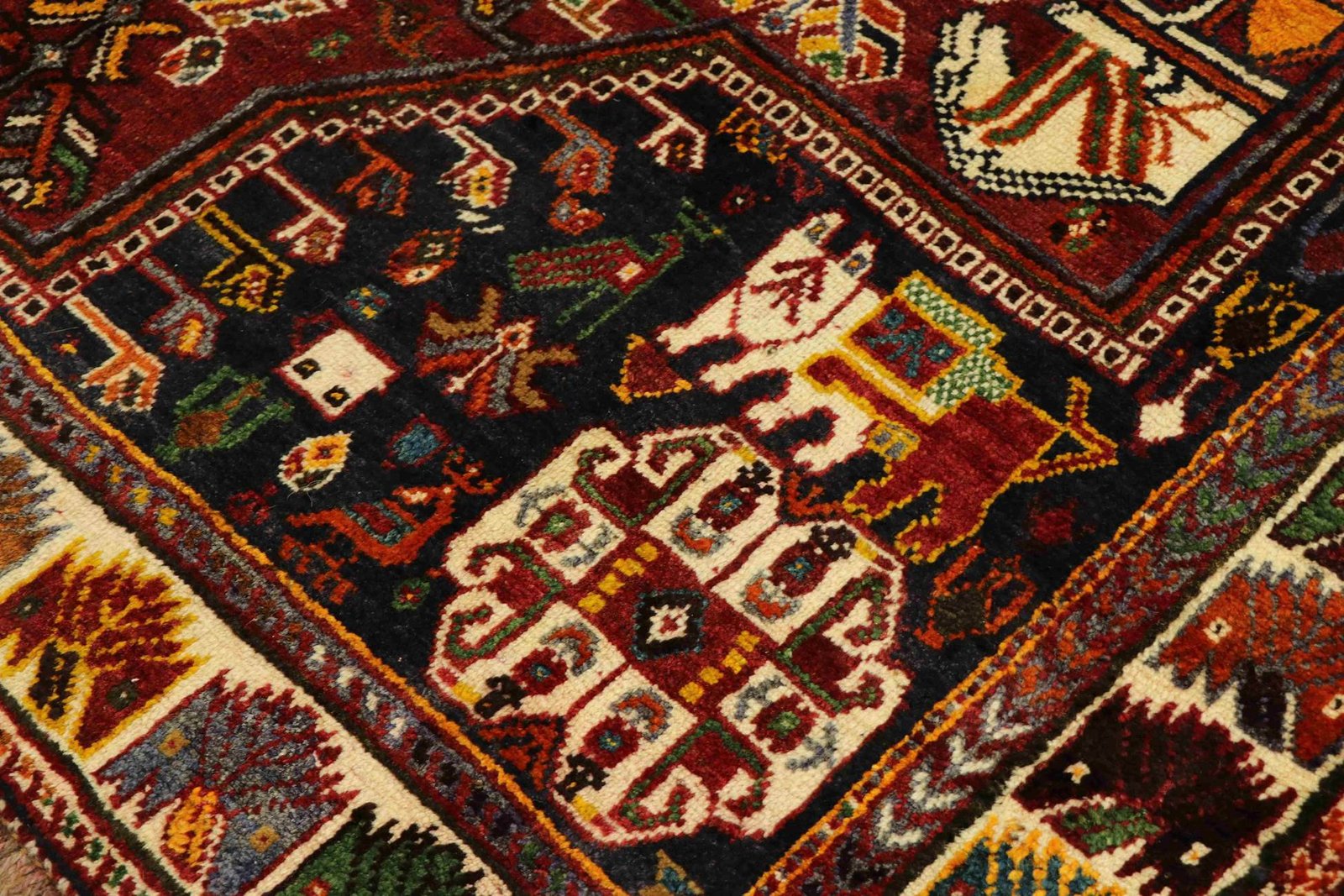 Ghashghai carpets, a highlight of Iranian nomadic art, are famous for their vibrant colours and patterns. Made from pure wool using the “wool-on-wool” technique, they captivate with traditional designs and natural colours. These carpets are highly prized in the Orient and Europe and are ideal for contemporary interiors. Their ease of repair and skilful use of colour accents make them particularly attractive. Ghashghai carpets embody centuries-old craftsmanship that adapts perfectly to current design preferences and trends. This makes them the preferred choice for aesthetically sophisticated spaces that value elegance and tradition.
