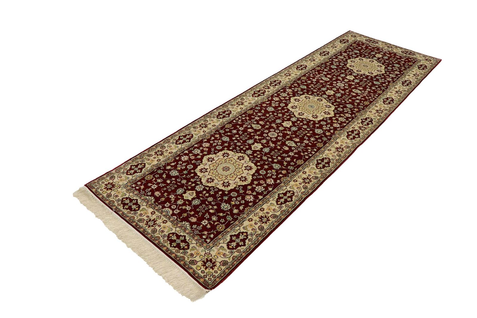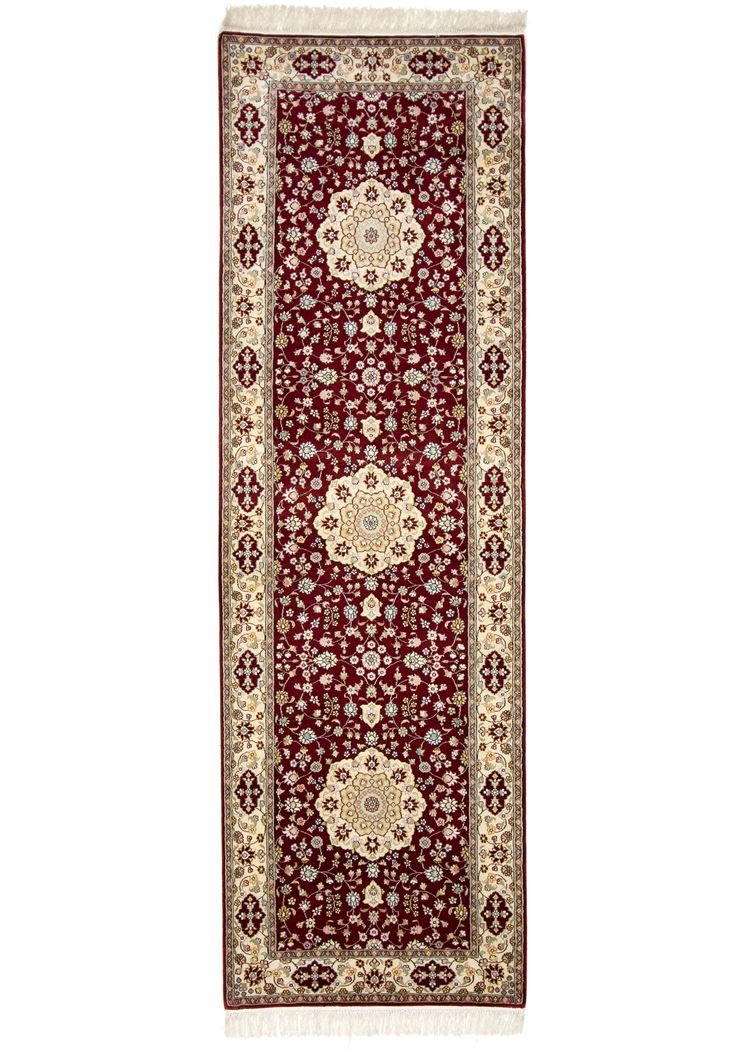 Hereke silk carpets are among the most beautiful and elegant hand-knotted Oriental carpets, known for their fine materials, patterns and colours. Originally from China, they are considered some of the finest Oriental carpets ever made, with an exceptional knot density of up to one million knots per square metre, always made of silk on silk. These cultural works of art from Hereke are passed down from generation to generation and reflect the tradition of their region of origin. They are characterised by high-quality materials, unique colour harmonies and traditional designs, whether made from precious silk or soft cork wool. A Hereke carpet adds a distinctive touch of elegance and artistic craftsmanship to any room.