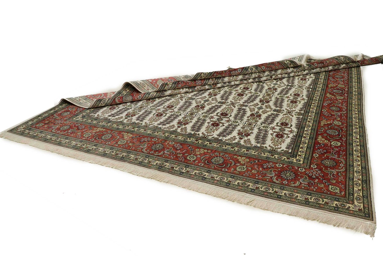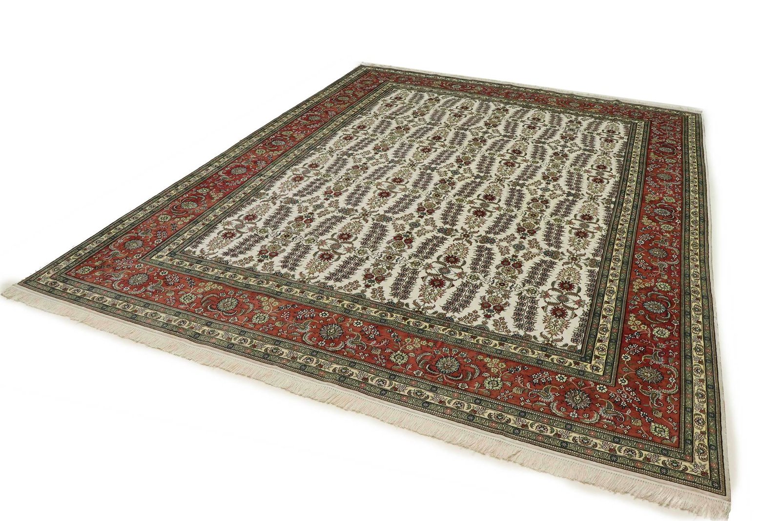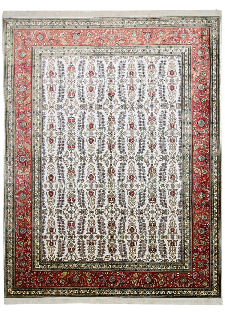 Hereke silk carpets are among the most beautiful hand-knotted Oriental carpets, known for their fine materials, patterns and colours. Originally from China, they are considered some of the finest Oriental carpets ever made, with an exceptional knot density of up to one million knots per square metre, always made of silk on silk. These cultural works of art from Hereke are passed down from generation to generation and reflect the tradition of their region of origin. They are characterised by high-quality materials, unique colour harmonies and traditional designs, whether made from precious silk or soft cork wool. A Hereke carpet adds a distinctive touch of elegance and artistic craftsmanship to any room.