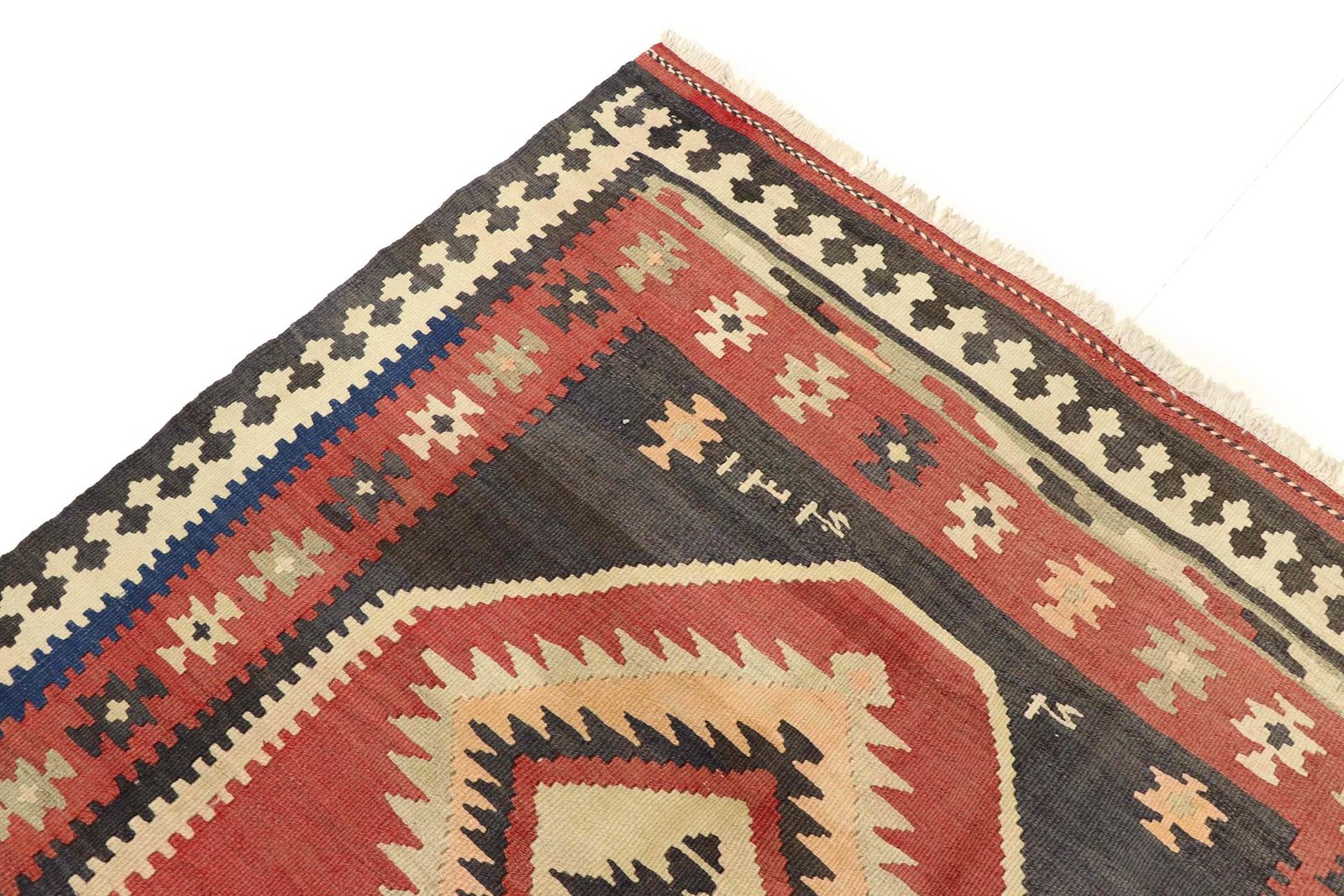 This hand-woven kilim carpet impresses with its multifaceted colours and typical kilim pattern. Pure sheep’s wool was used for the weaving, which is reflected in the quality of the carpet. This makes the carpet significantly more durable than its machine-knotted cousin. All carpets are handmade, unique pieces with their own character, which you will never find again in this form.