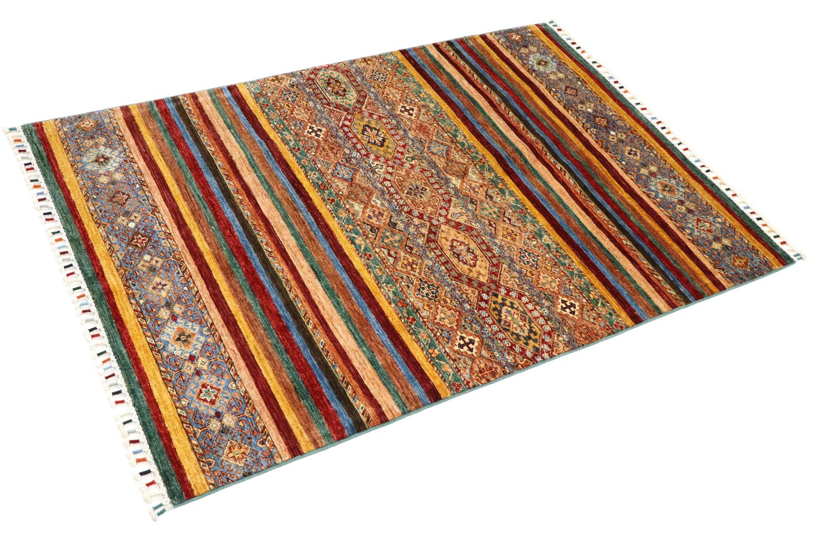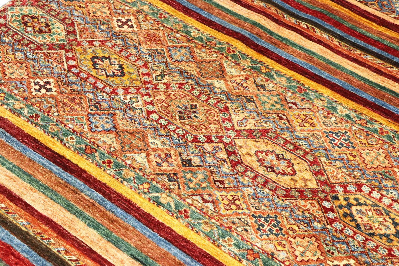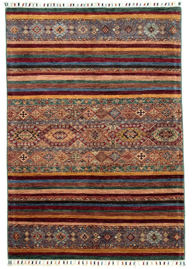 Khorjin carpets are made from the highest quality hand-spun sheep’s wool, mainly in Iran, Afghanistan and Pakistan. The wool is spun by hand before being knotted into a carpet. Wool is known for its natural durability, dirt repellency and thermal insulation. It is also particularly soft and gives the carpet a natural sheen. This traditional manufacturing method combines craftsmanship with the advantages of a centuries-old material that is both functional and aesthetically appealing. The Khorjin carpet thus symbolises not only craftsmanship, but also the timeless beauty and quality of natural wool.