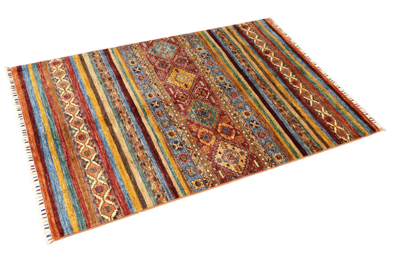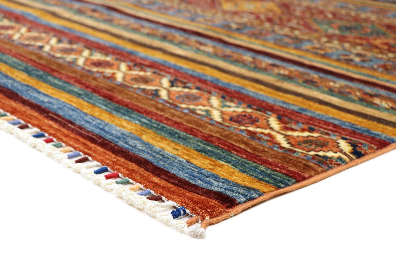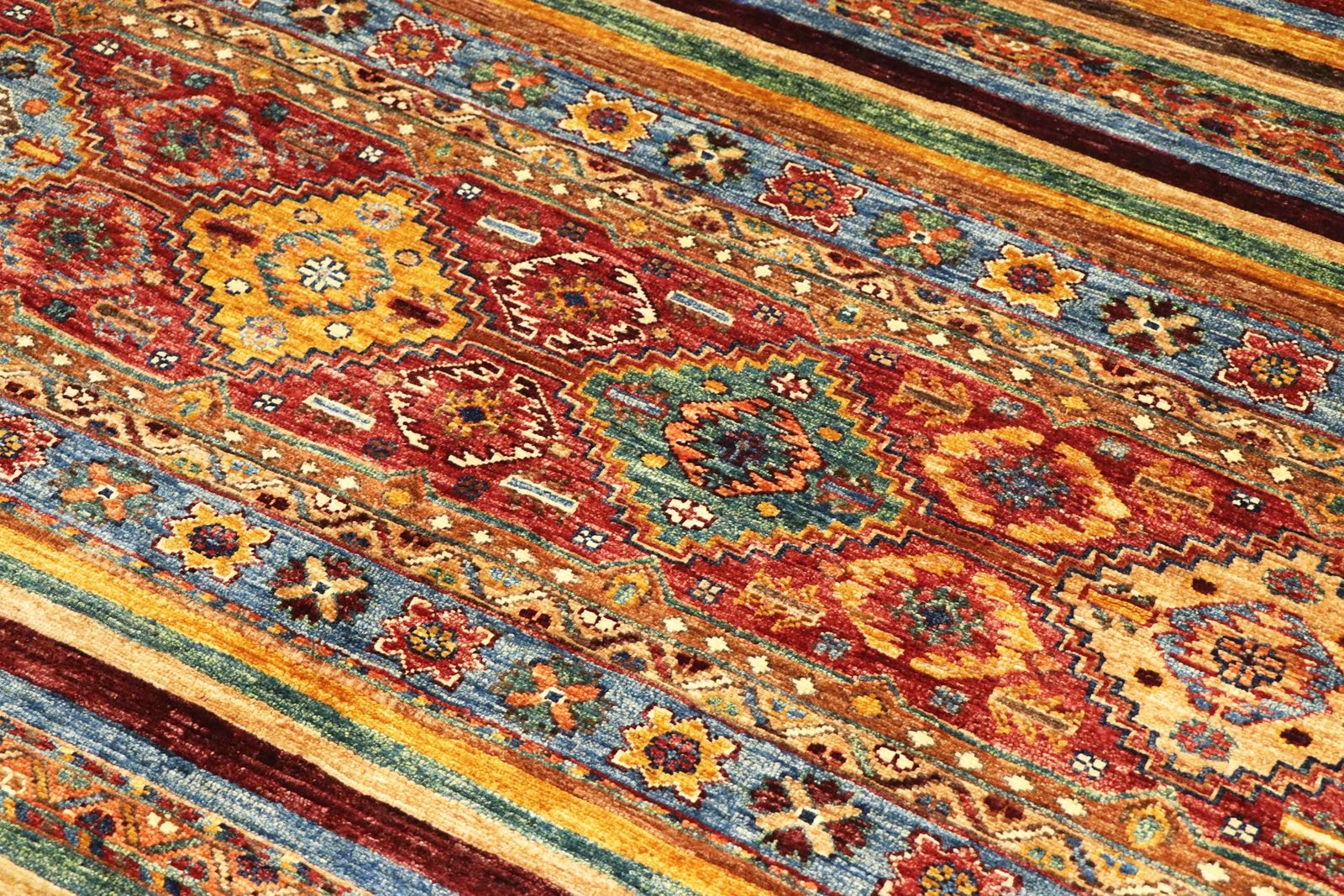 The Khorjin carpet is made from hand-spun sheep’s wool of the highest quality. This traditional type of carpet is particularly common in Iran, Afghanistan and Pakistan, where the wool is still spun by hand before the actual knotting begins. Wool has proven itself over centuries as a natural and extremely durable material. It has dirt-repellent and heat-insulating properties and is also incomparably soft with a natural sheen. The production of each Khorjin carpet requires precise craftsmanship and often traditional designs that can reflect cultural and historical elements. These carpets are not only decorative works of art, but also functional floor coverings that bring comfort and beauty to living spaces.