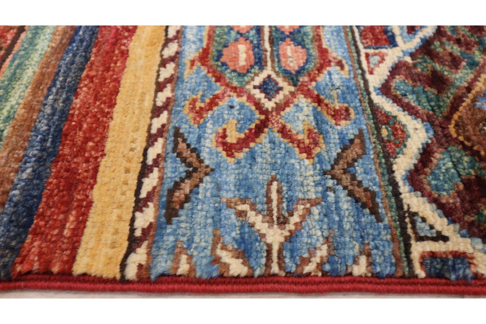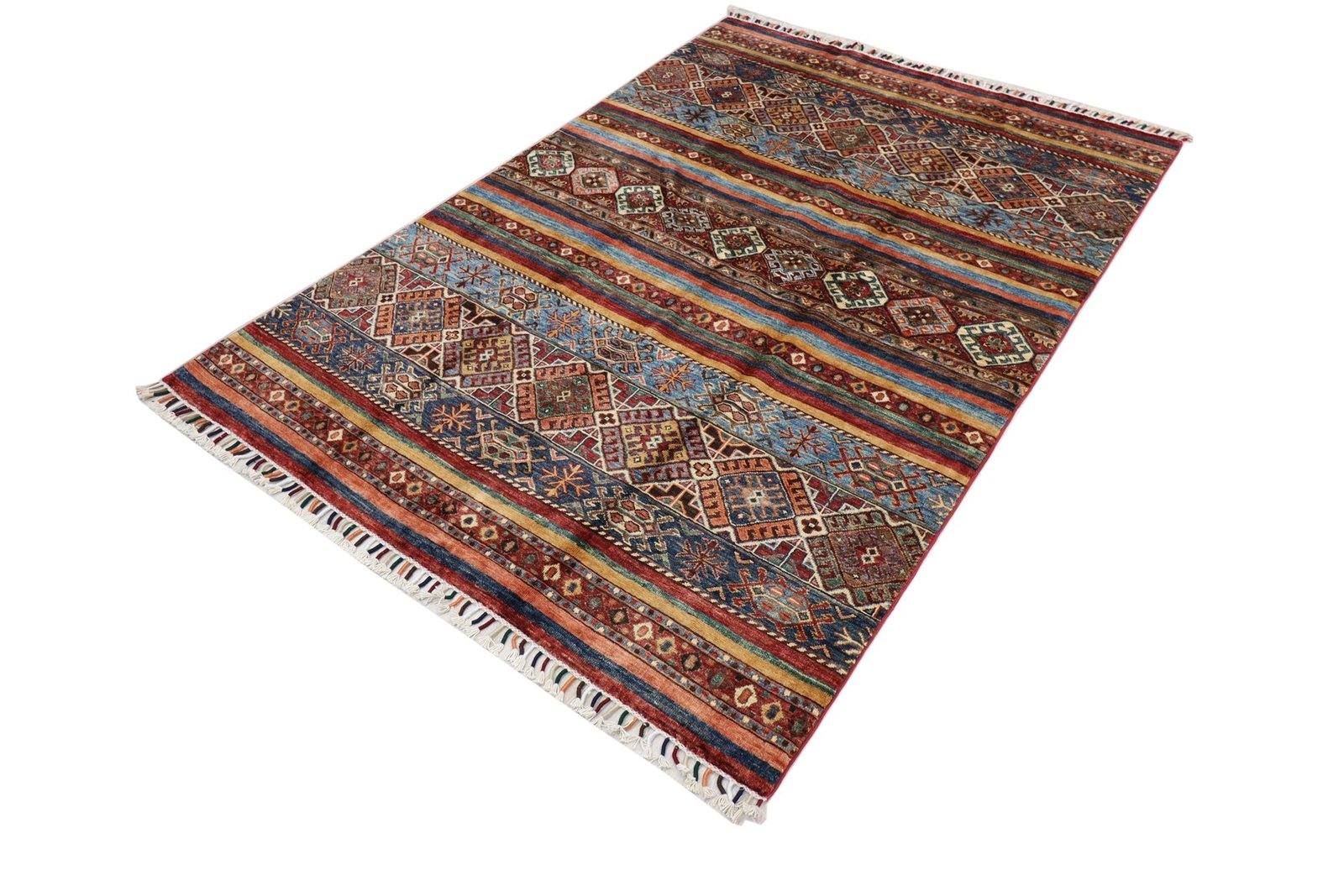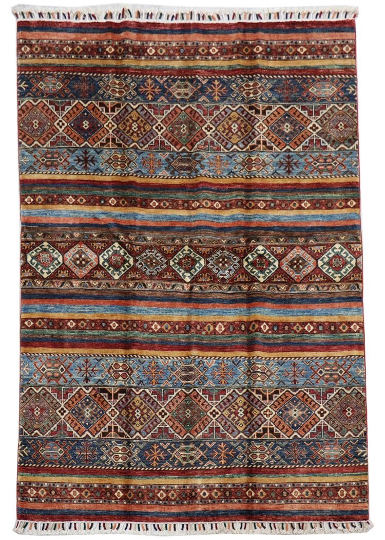 The Khorjin carpet, made from hand-spun sheep’s wool of the highest quality, originates primarily from Iran, Afghanistan and Pakistan. The hand-spun wool is characterised by its natural durability, dirt repellency and thermal insulation. It is also soft and gives the carpet a natural sheen. These properties make wool a preferred material that has proven itself over centuries. The Khorjin carpet combines precision craftsmanship with the advantages of a functional and aesthetically appealing material. It thus represents the traditional craftsmanship and cultural significance of the regions from which it originates.