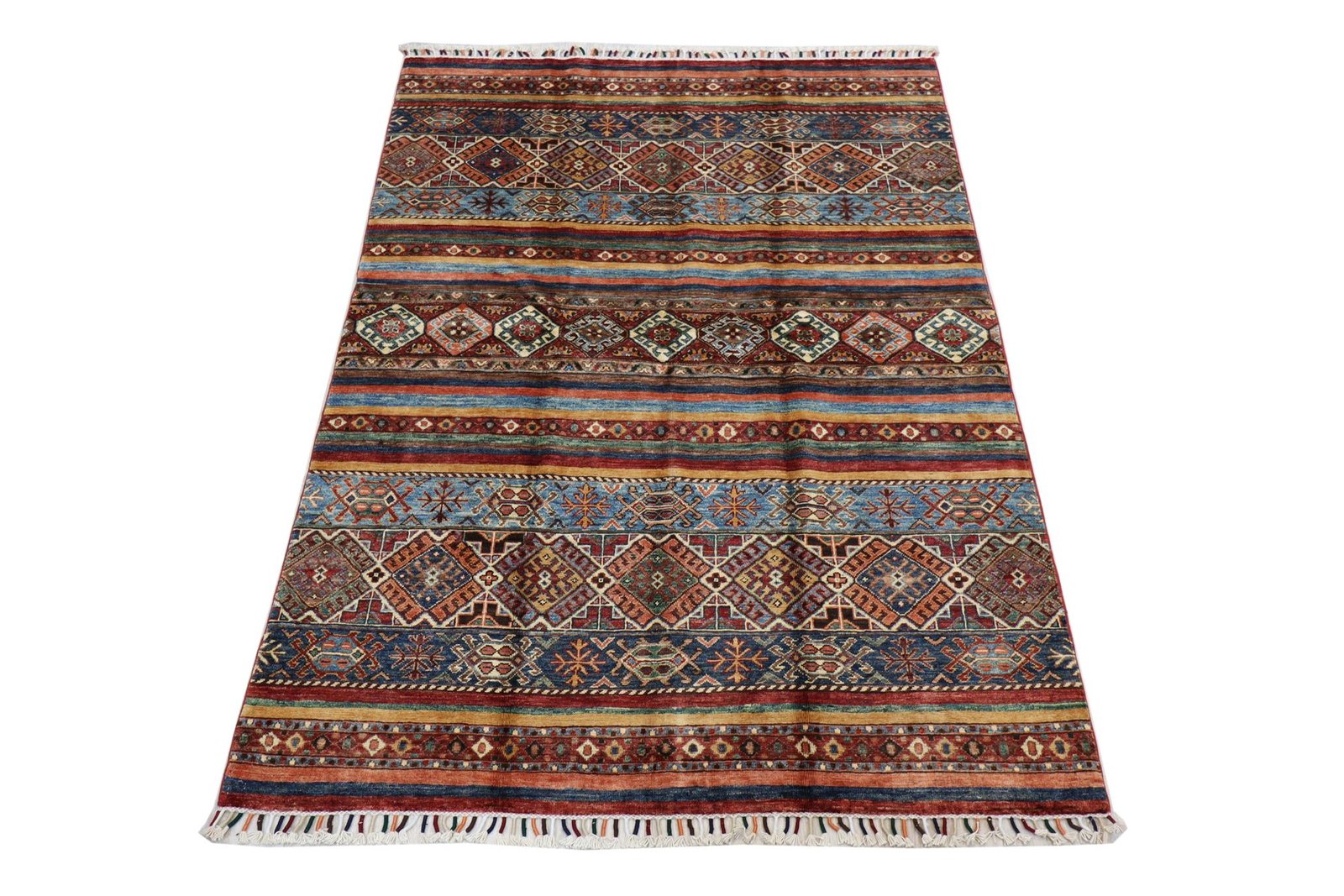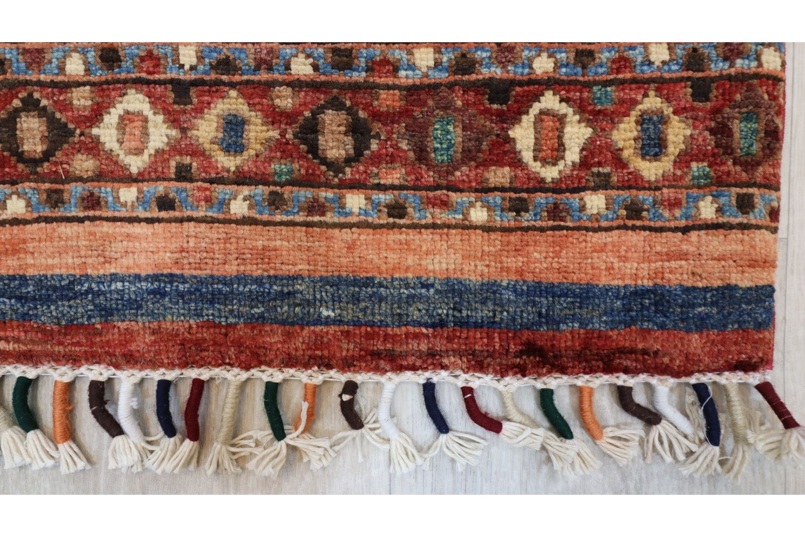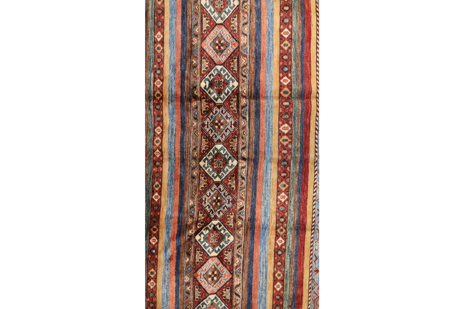 The Khorjin carpet, made from hand-spun sheep’s wool of the highest quality, originates primarily from Iran, Afghanistan and Pakistan. The hand-spun wool is characterised by its natural durability, dirt repellency and thermal insulation. It is also soft and gives the carpet a natural sheen. These properties make wool a preferred material that has proven itself over centuries. The Khorjin carpet combines precision craftsmanship with the advantages of a functional and aesthetically appealing material. It thus represents the traditional craftsmanship and cultural significance of the regions from which it originates.