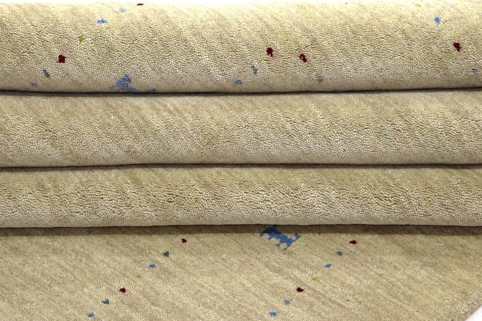 Loom Lori carpets, hand-woven in India, include the popular Gabbeh carpets, whose name means “raw” in Farsi. Since the early 1990s, they have enjoyed increasing popularity as a more relaxed, folk-inspired alternative to traditional Persian carpets. Gabbehs are characterised by their thick, luxurious pile, a variety of colours and bold geometric patterns, either abstract or figurative with motifs such as animals or people. Mostly made of wool, some are also made of cotton or other materials. Their size varies from small mats to large rugs and they fit into any room in the house. These rugs embody craftsmanship and offer a charming addition to modern or traditional interior styles, reflecting a rugged beauty and cultural depth. Gabbehs are not only works of art, but also functional decorations that bring comfort and aesthetic sophistication to living spaces.