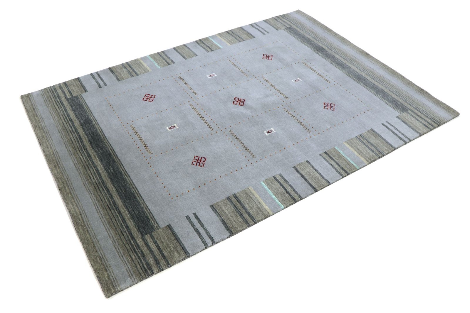 Loom Lori rugs are hand-woven treasures from India, including the popular Gabbeh rugs, named after the Farsi word for “raw”. Since the 1990s, they have become increasingly popular as a more relaxed alternative to traditional Persian rugs. Gabbehs are characterised by their thick, luxurious pile, diverse colours and bold geometric patterns, whether abstract or featuring motifs such as animals or people. Mostly made of wool, there are also variants made of cotton or other materials. With sizes ranging from small mats to large rugs, they fit into any room in the home. These rugs embody craftsmanship and offer a charming addition to modern or traditional interior styles, reflecting rugged beauty and cultural depth.