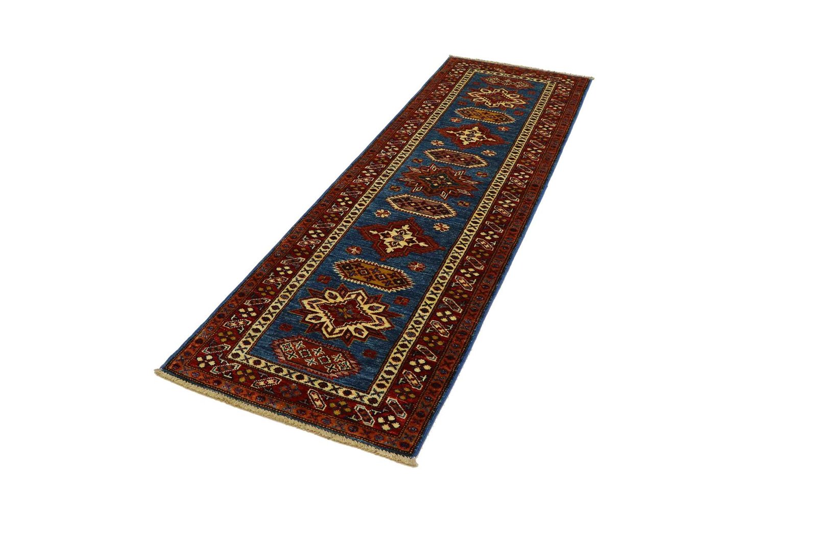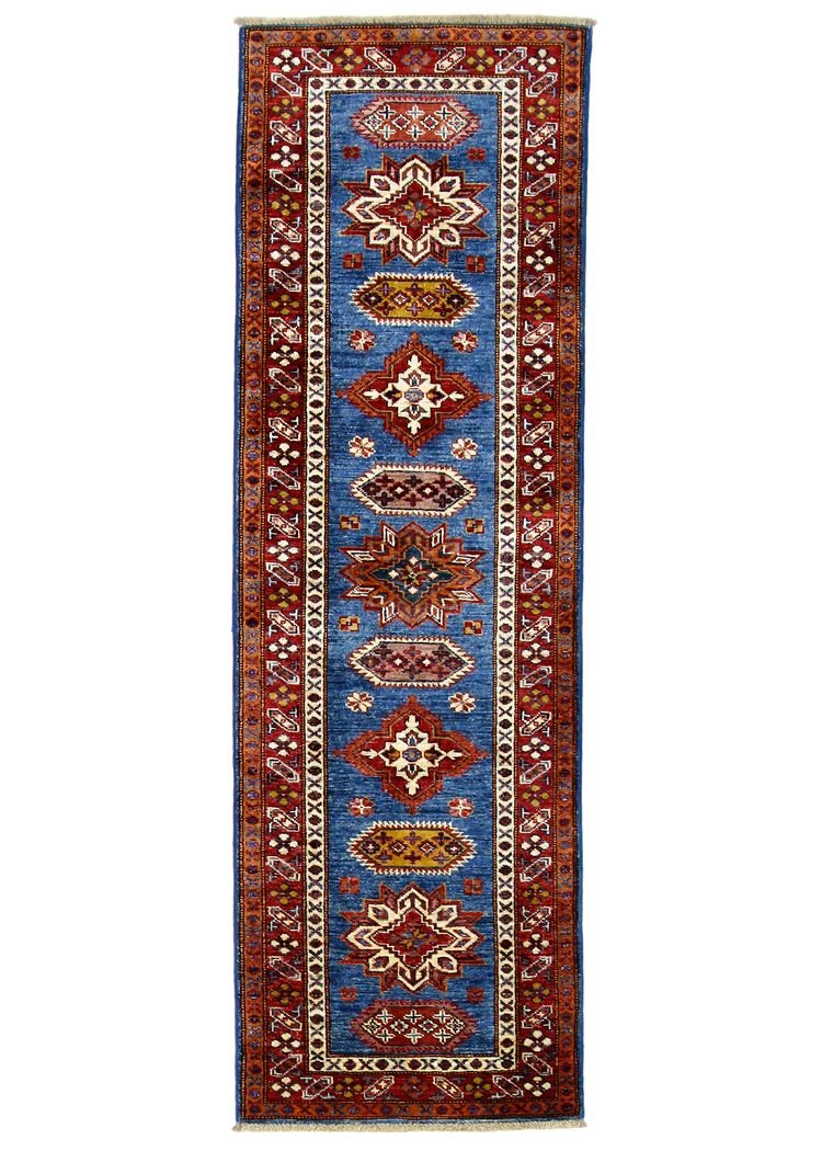 This hand-knotted Kazak rug, made in the traditional style of Caucasian rugs, impresses with its high durability and bright colours. It embodies the rich culture of the Caucasus in an impressive composition that reflects the centuries-old art of carpet weaving. This art form is characterised by simple, beautiful patterns and strong, vibrant colours. As one of the most sought-after Oriental carpets, both in the Orient and in Europe, this Kazak is a coveted collector’s item. Particularly noteworthy are the simple weaving and the deliberate colour accents, which make the carpet perfect for combining with modern interior design trends. This carpet combines traditional craftsmanship with contemporary design and is an ideal addition to stylish interiors.