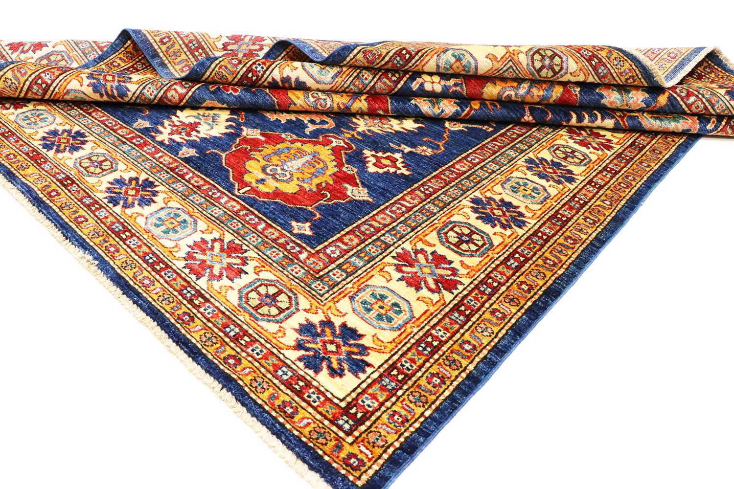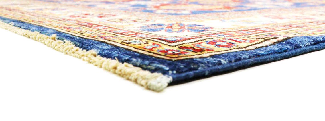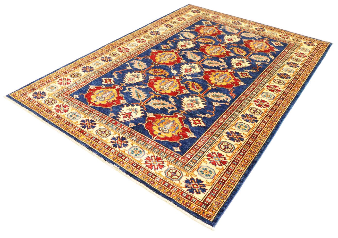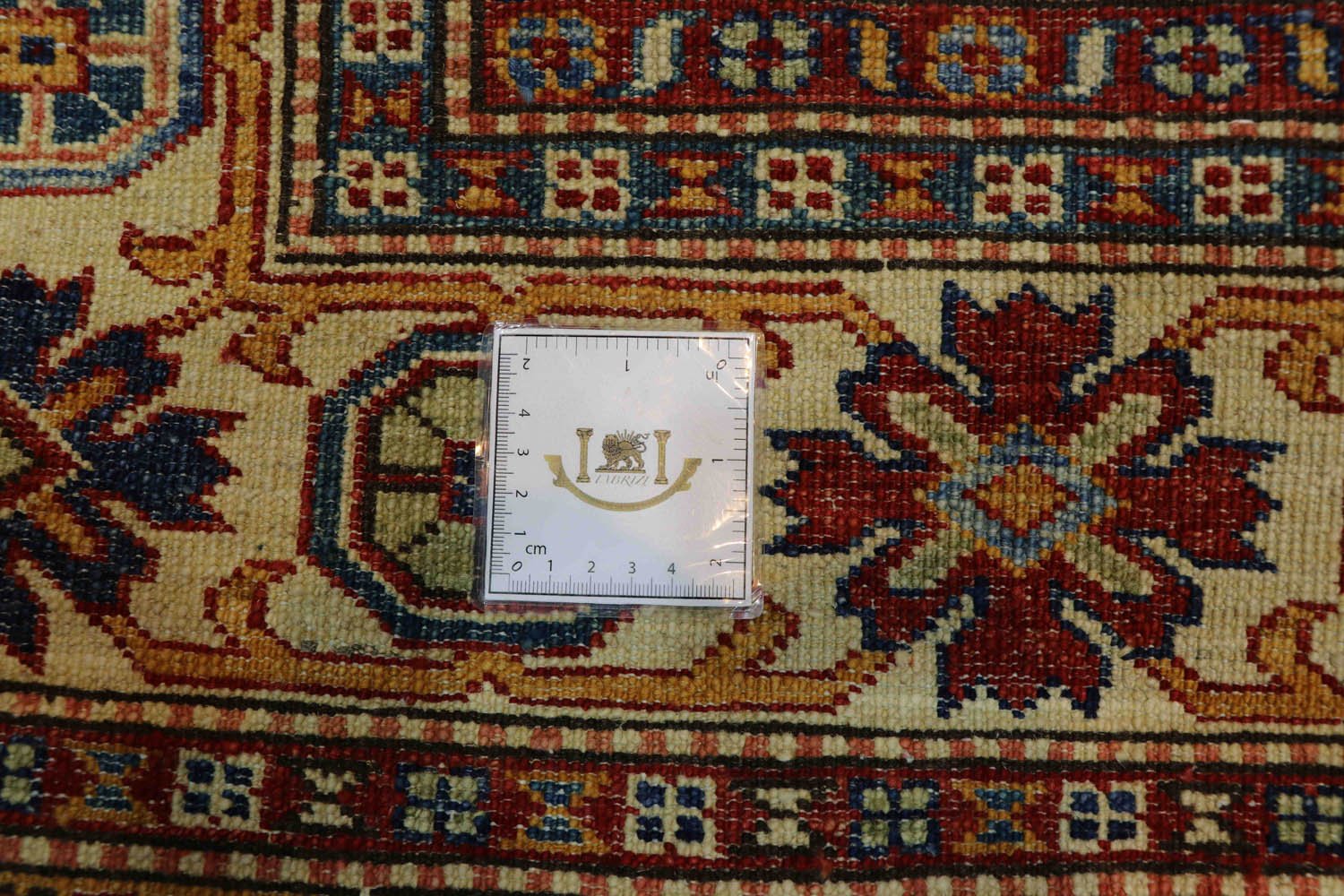 This hand-knotted Kazak carpet, made in the traditional style of Caucasian carpets, is characterised by its exceptional robustness and vibrant colours. It reflects the rich culture of the Caucasus, which has mastered the art of carpet weaving with simple but expressive patterns for centuries. The use of strikingly vivid colours and the simple elegance of the designs make this rug an outstanding example of Caucasian craftsmanship. Among Oriental rugs, this Kazak is one of the most sought-after both in the Orient and in Europe. Its simple weave and harmoniously coordinated colour accents make it particularly adaptable to modern interiors. This carpet combines traditional heritage with contemporary design, making it perfect for current interior trends.