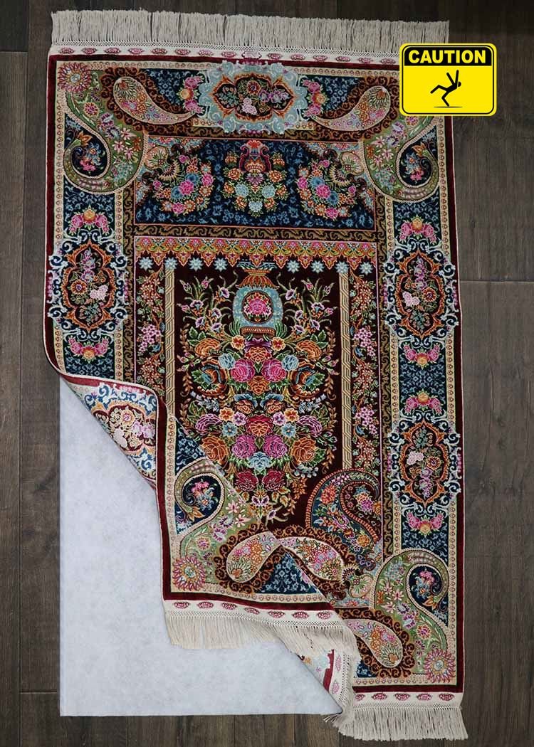 A non-slip carpet underlay is crucial for preventing accidents. Our 1 mm thick underlay made of soft foam is ideal for smooth floors and underfloor heating. Air and heat permeable, it provides optimal support for your oriental carpet.