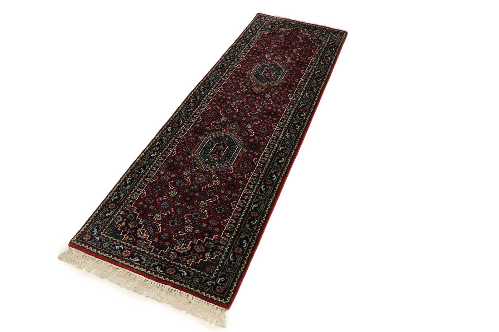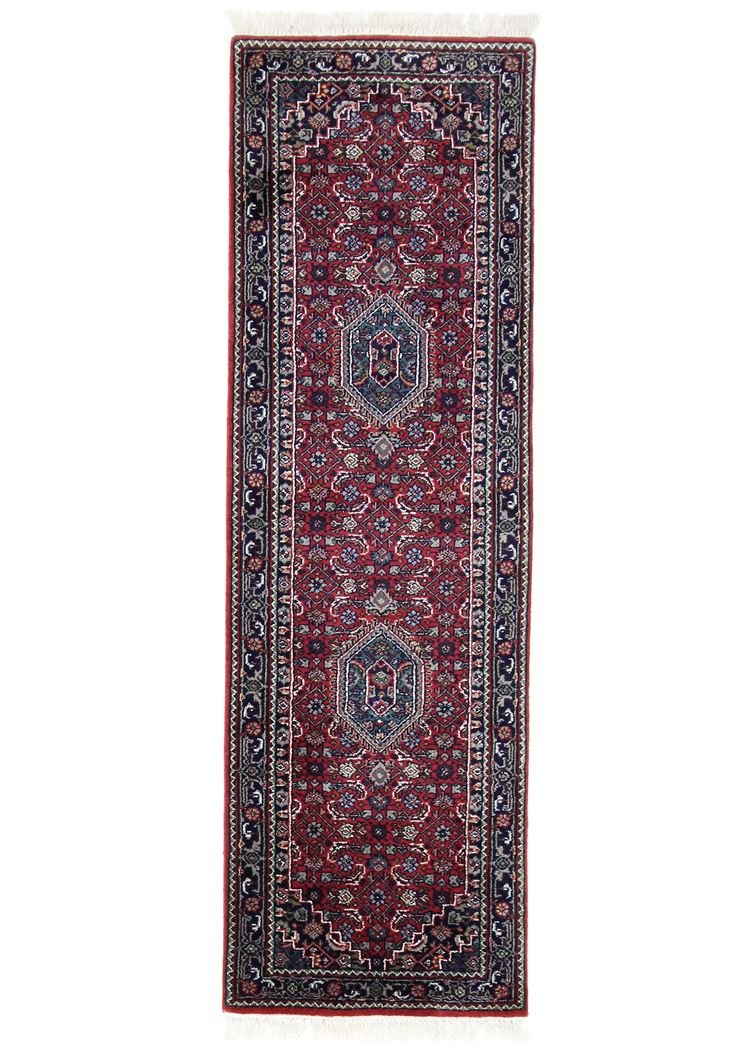 Bidjar is one of the most beautiful nomadic carpets in the Orient, famous for its quality and robustness. Unique is the use of wet wool, which makes Bidjar twice as heavy as other Oriental carpets. Traditional fish patterns and natural colours have characterised it for years. Among Oriental carpets, it is particularly sought after in the Orient and Europe. Its simple patched design and subtle colour accents make it ideal for modern interiors.