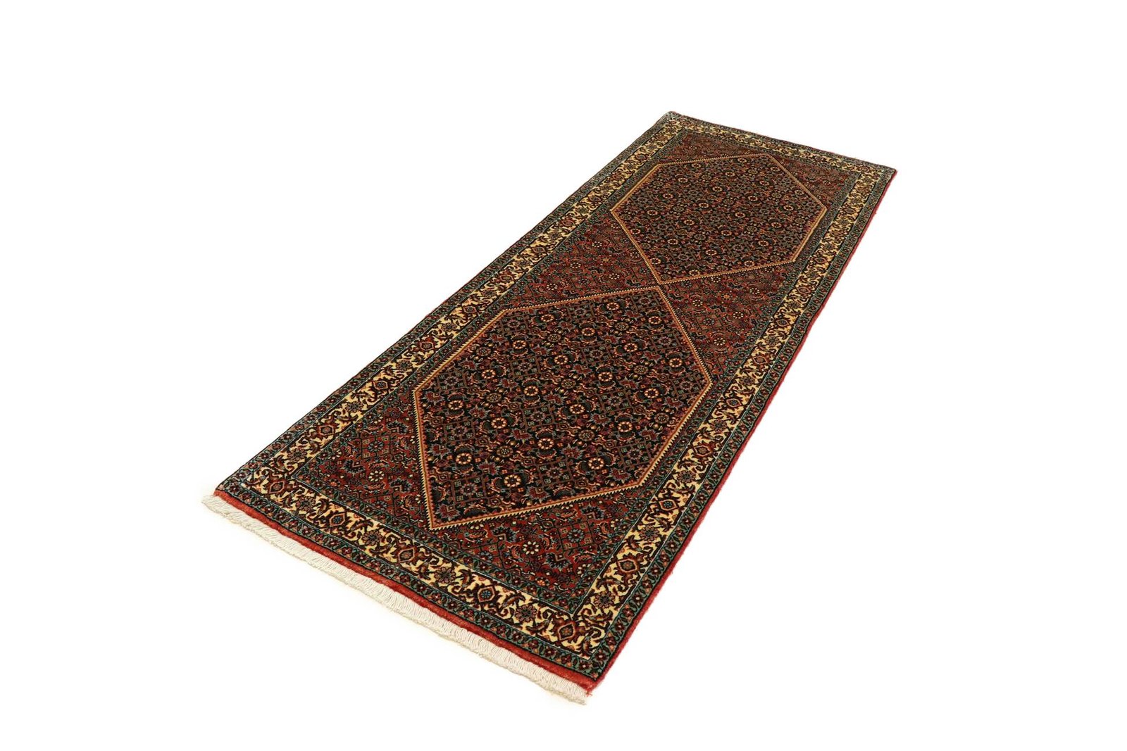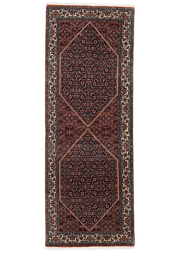 Bidjar is one of the most beautiful nomadic carpets in the Orient, known for its quality and robustness. It is uniquely knotted with wet wool, which gives it double the weight. Traditionally designed with fish patterns and natural colours, it is the most sought-after Oriental carpet in the Orient and Europe. Its ease of repair and colour accents make it ideal for current interior design trends.