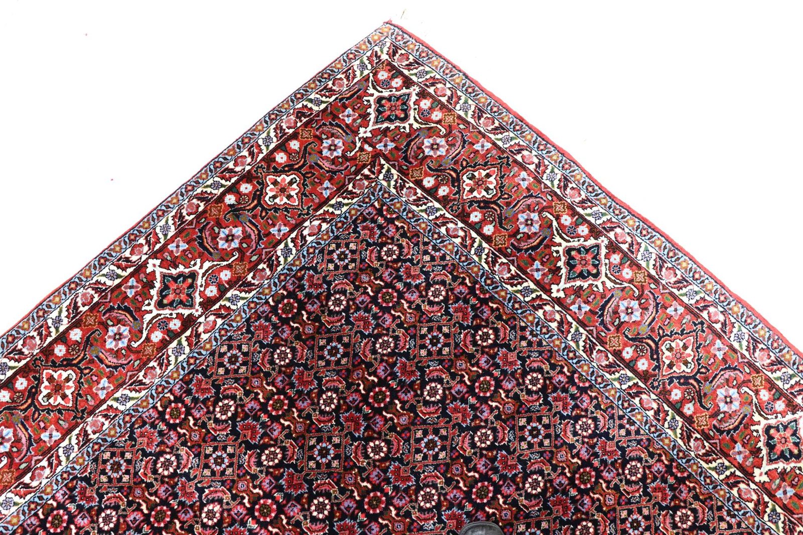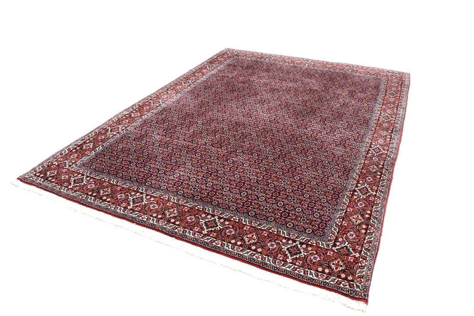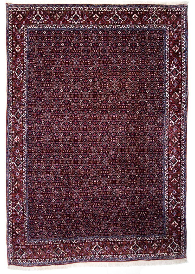 Bidjar is one of the most beautiful nomadic carpets in the Orient, known for its quality and robustness. They are knotted wet from wool, which makes them twice as heavy as other Oriental carpets. For years, they have been produced with traditional fish patterns and natural colours. Among all Oriental carpets, they are particularly sought after in the Orient and Europe, perfectly combinable with current interior design trends thanks to their simple weaving and colour accents.
