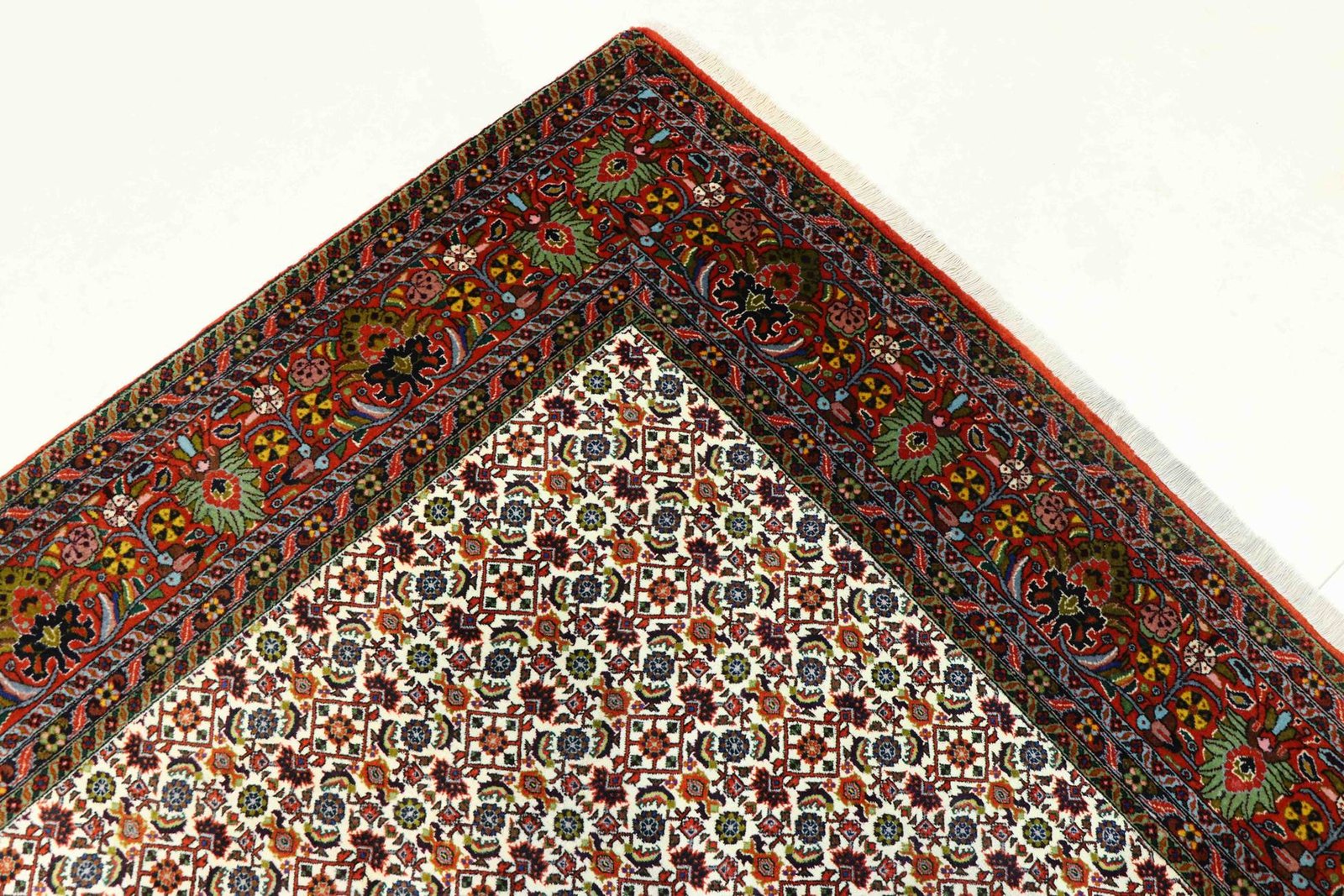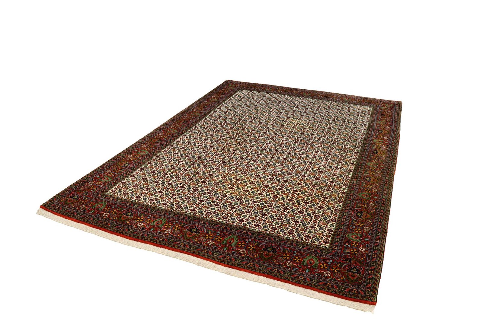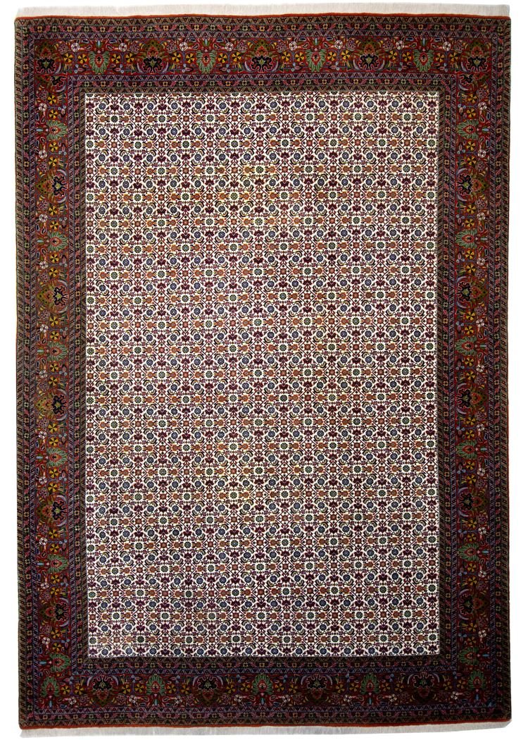 Bidjar is one of the most beautiful nomadic carpets in the Orient, renowned for its quality and robustness. It is unique in that it is knotted from wet wool, making it twice as heavy as normal Oriental carpets. For many years, Bidjar carpets have been known for their traditional fish patterns and natural colours. They are considered the most sought-after Oriental carpets in the Orient and Europe, particularly because they are easy to repair and their subtle colour accents perfectly match current interior design trends.