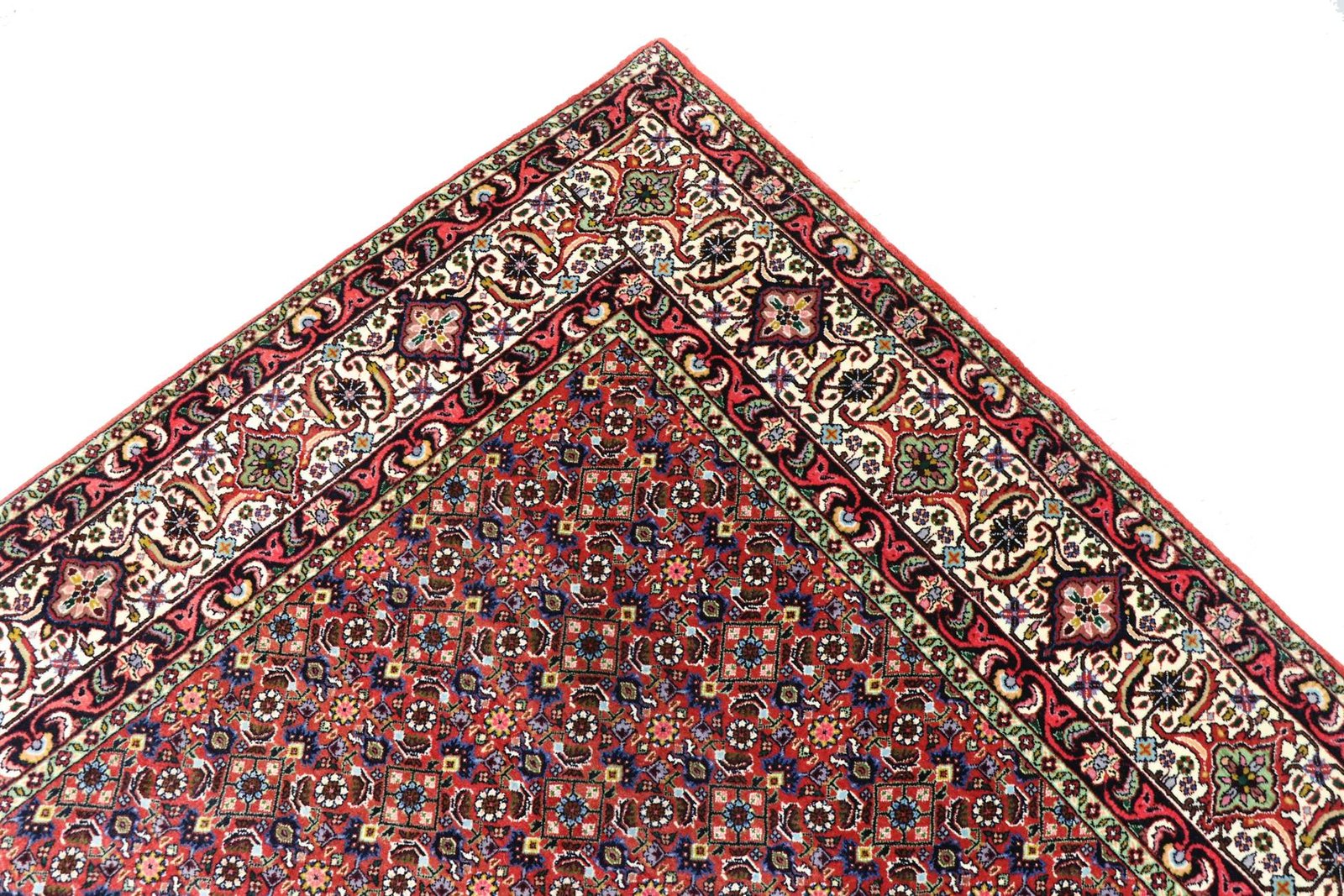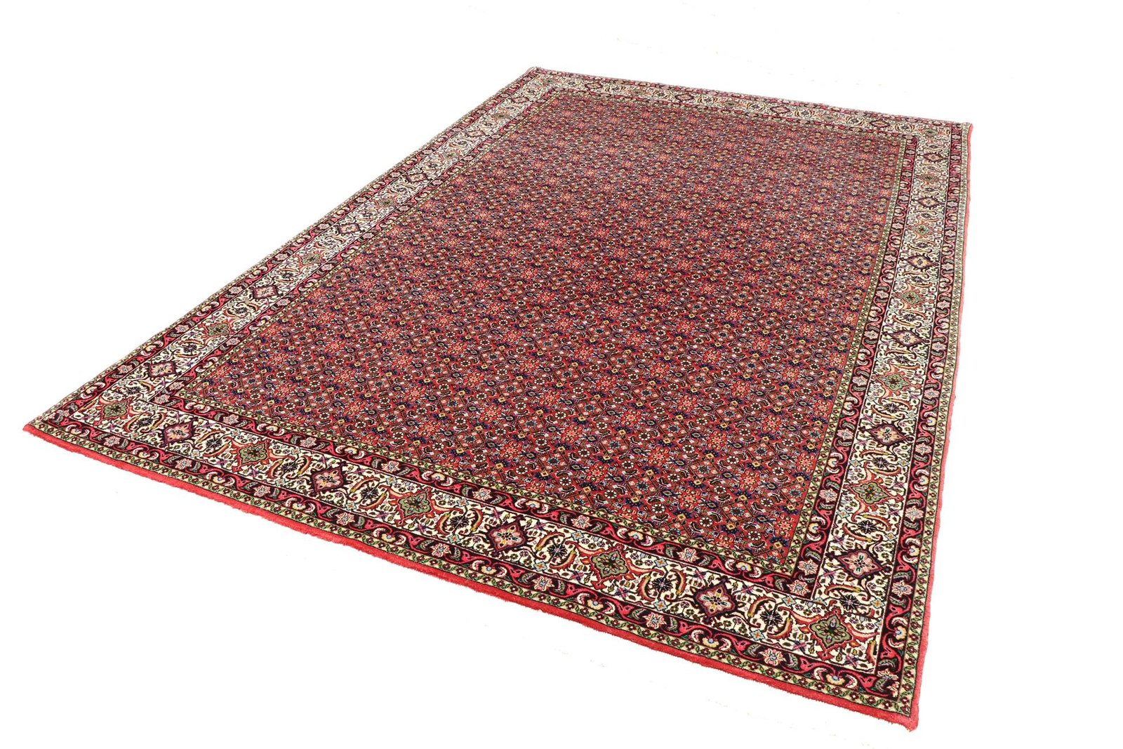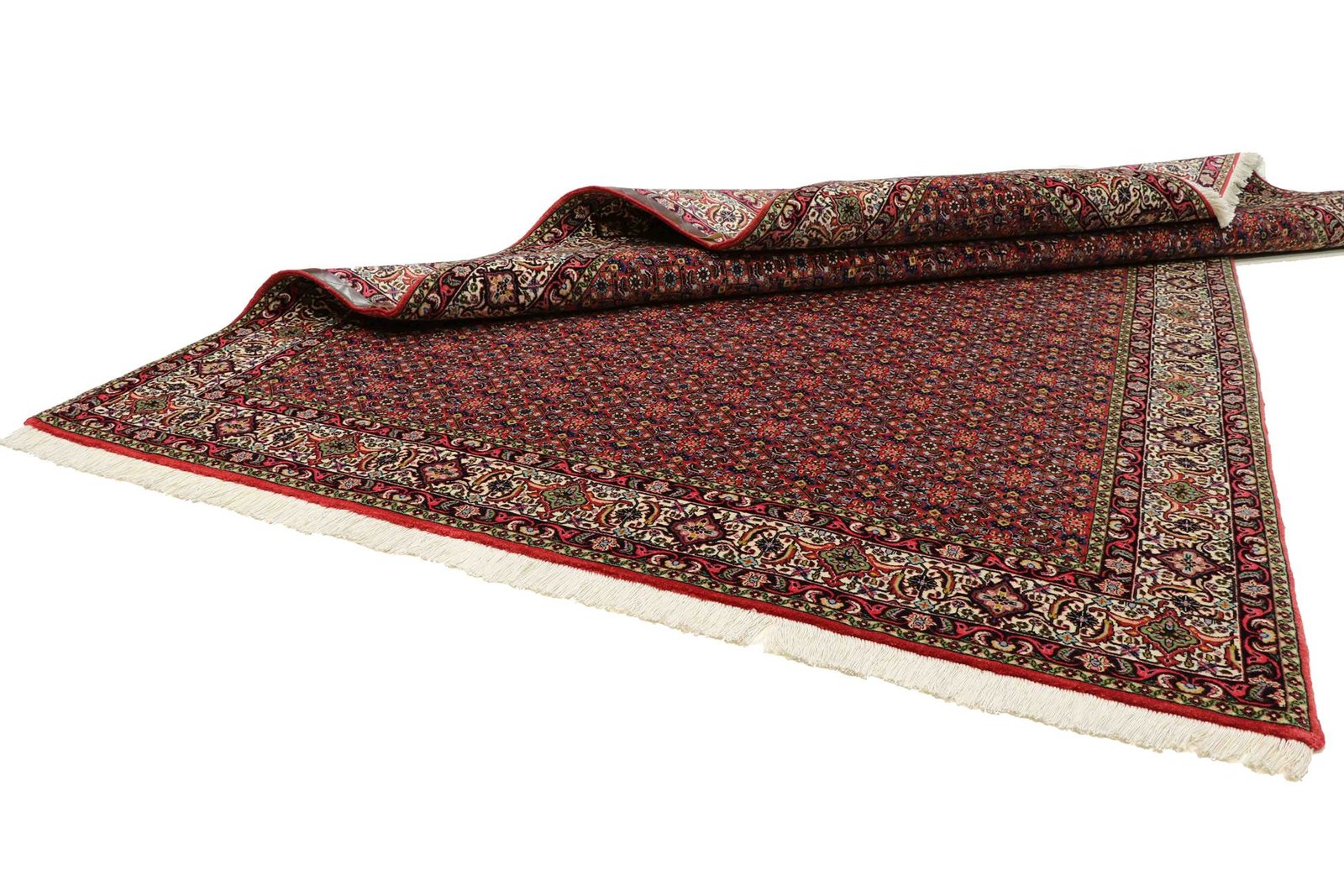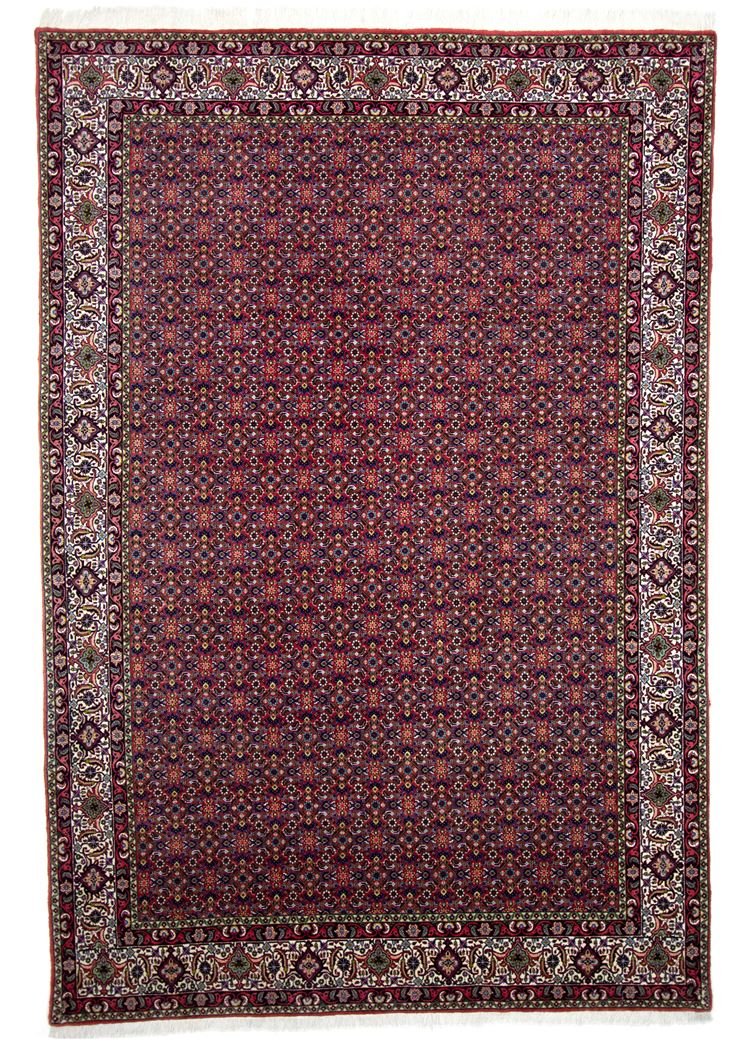 Bidjar is one of the most beautiful nomadic carpets in the Orient, renowned for its quality and robustness. It is unique in that it is knotted from wet wool, which doubles its weight compared to other Oriental carpets. For generations, they have been decorated with traditional fish patterns and natural colours. This makes them the most sought-after Oriental carpets in the Orient and Europe. Their ease of repair and subtle colour accents allow them to blend perfectly into modern interiors and current design trends.