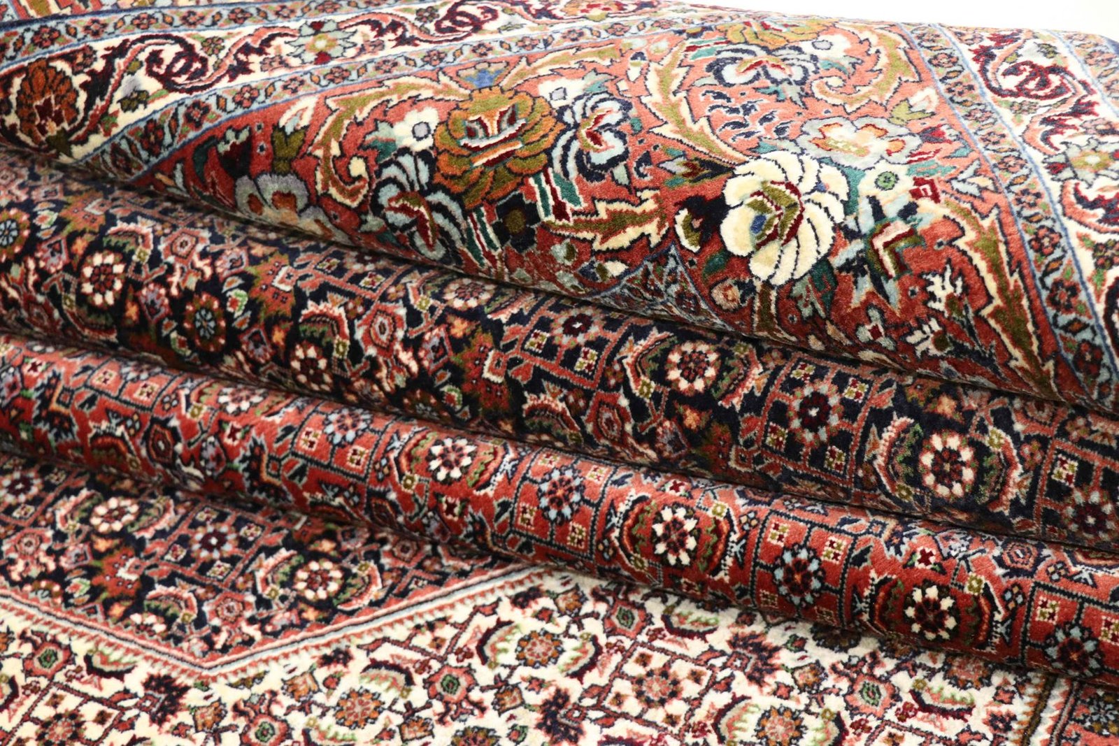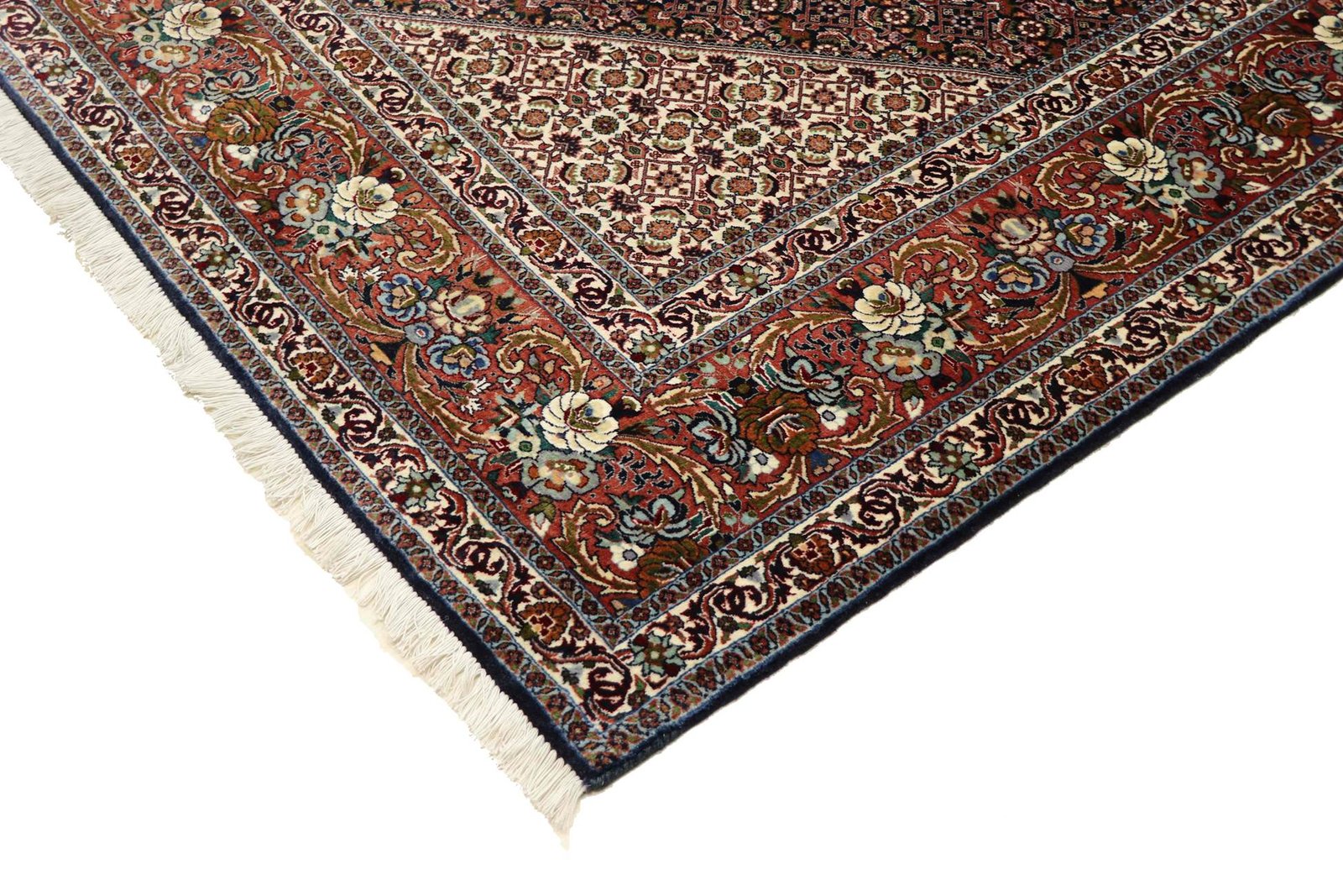 Bidjar is known for its outstanding quality and robustness among the nomadic carpets of the Orient. It is uniquely woven from damp wool, making it twice as heavy as normal Oriental carpets. For generations, it has been characterised by traditional fish patterns and natural colours. The most sought-after Oriental carpet in the Orient and Europe, it impresses with its ease of repair and subtle colour accents that perfectly match current interior design trends.