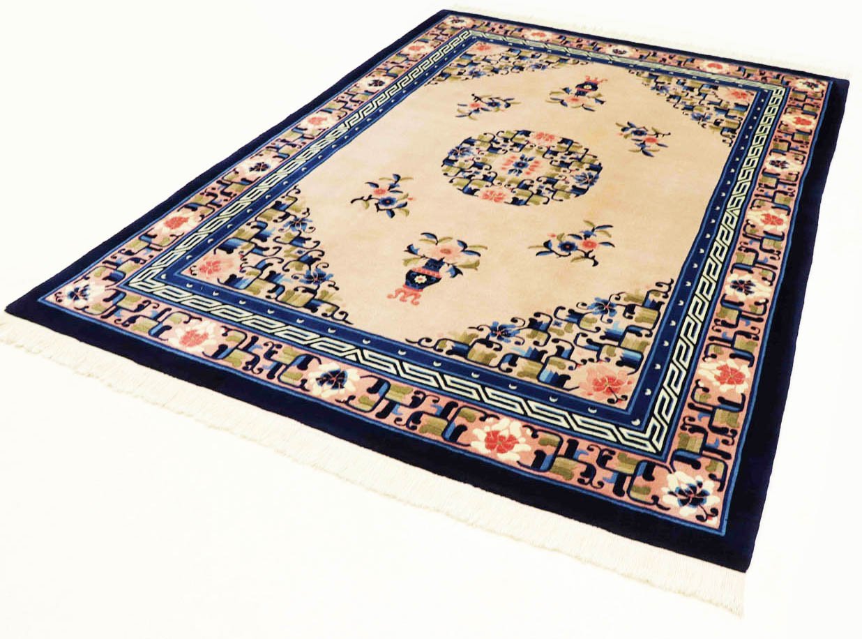 China has been weaving carpets for centuries, which are renowned in the Orient for their patterns and colours. They often reflect motifs from Chinese porcelain, sometimes also animals such as dragons. Historically, these carpets were often made to exact measurements and with motifs from the imperial palaces, mainly for the rich and rulers.