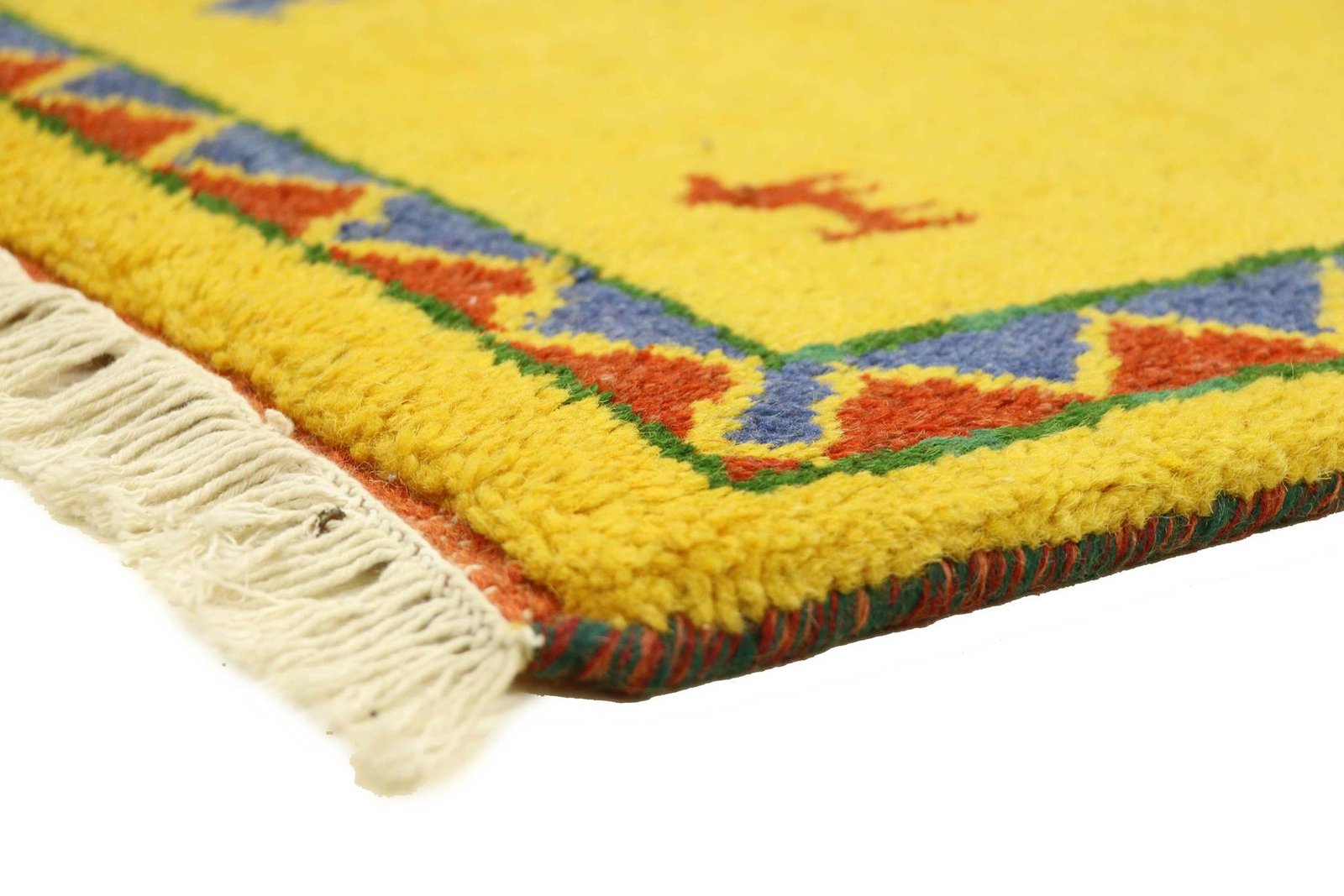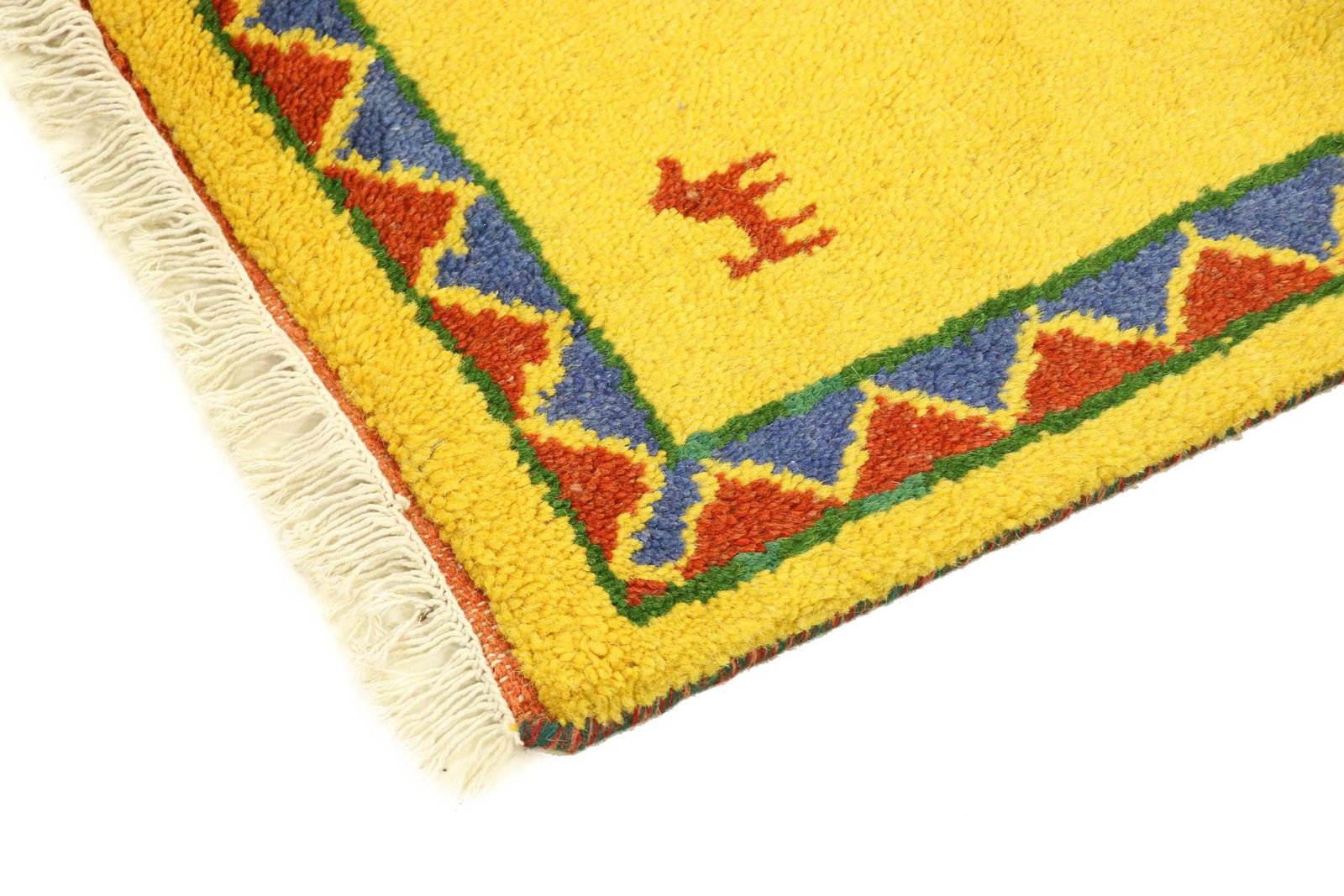 Gabbeh rugs, which means “raw” in Farsi, have been popular since the 1990s for their rustic simplicity in contrast to traditional Persian rugs. They have a thick pile, diverse colours and bold geometric patterns, often with abstract or figurative motifs such as animals or people. Mostly made of wool, some also of cotton, they vary in size from small mats to large carpets and fit into any interior design.