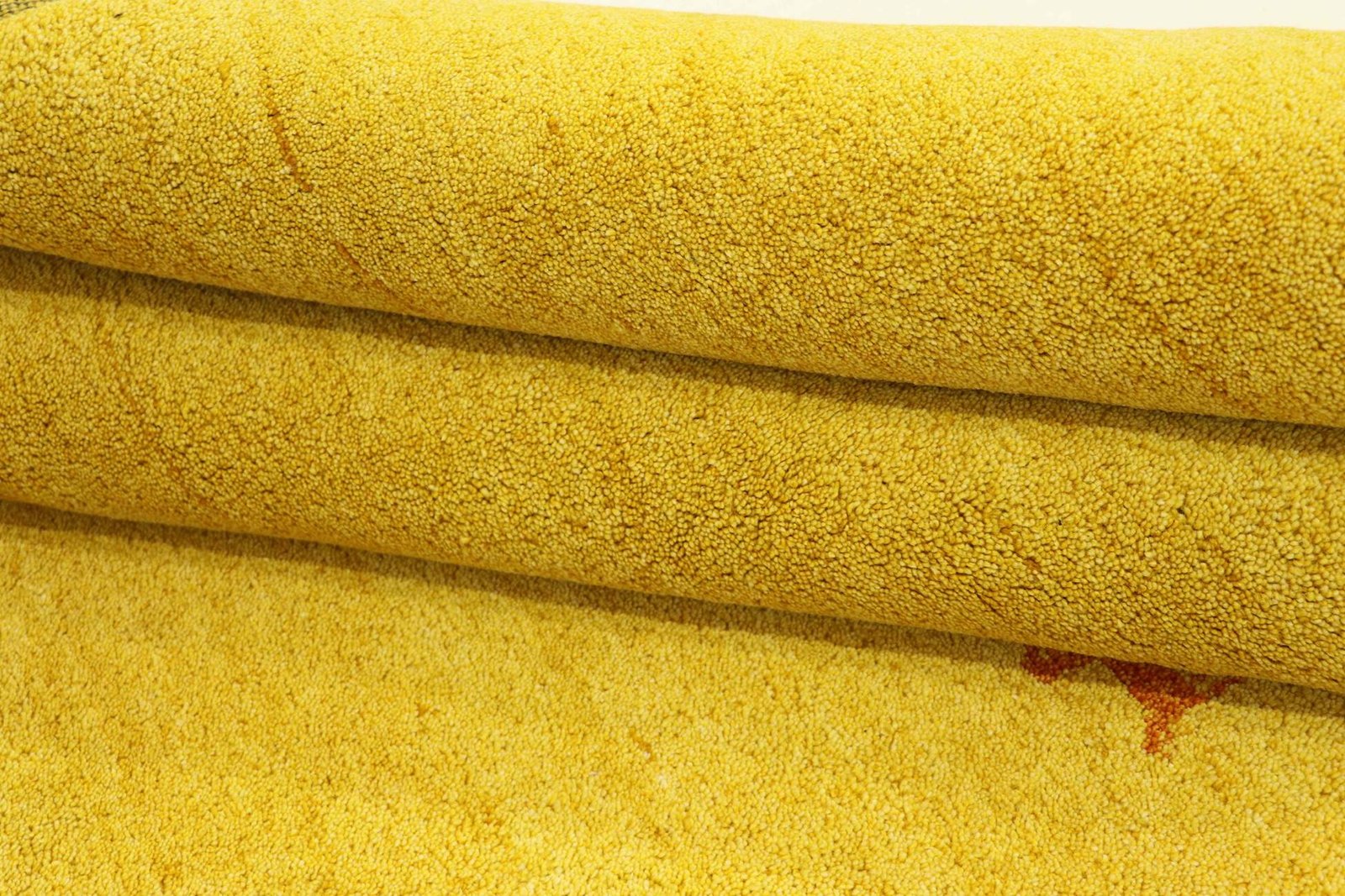 Gabbeh rugs from Iran and India have been rustic, popular alternatives to traditional Persian rugs since the 1990s. They are characterised by thick pile, many colours and bold geometric or animal motifs. Usually made of wool on wool, they range from small mats to large rugs and fit into any room in the house.