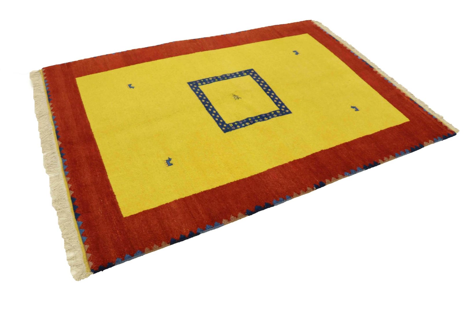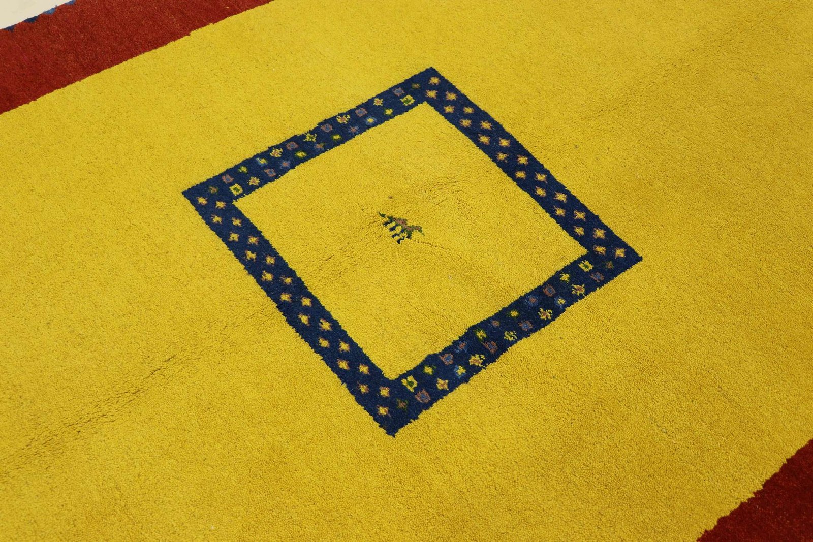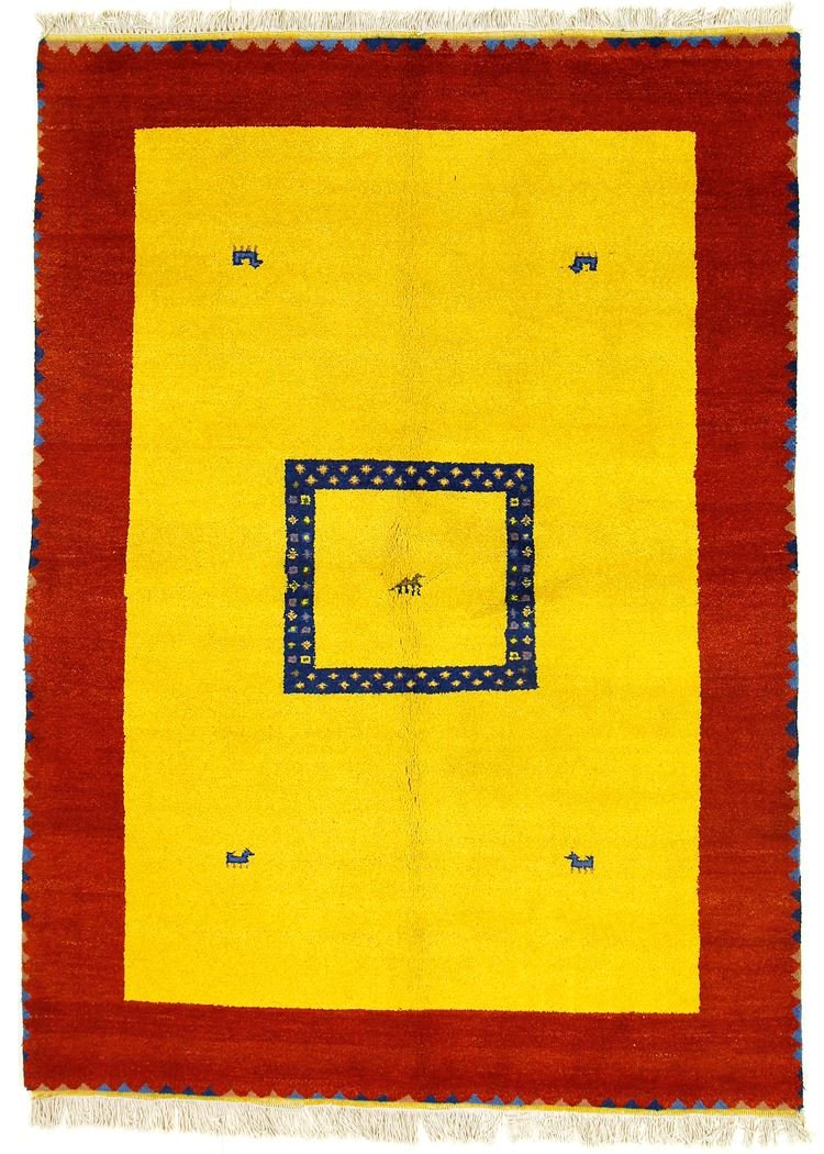 Gabbeh rugs from Iran and India are rustic, hand-knotted rugs known for their thick pile, vibrant colours and bold patterns featuring geometric shapes or animal motifs. Since the 1990s, they have been popular as a more relaxed alternative to traditional Persian rugs, suitable for any room in the house, from small mats to large carpets, mostly made of wool.