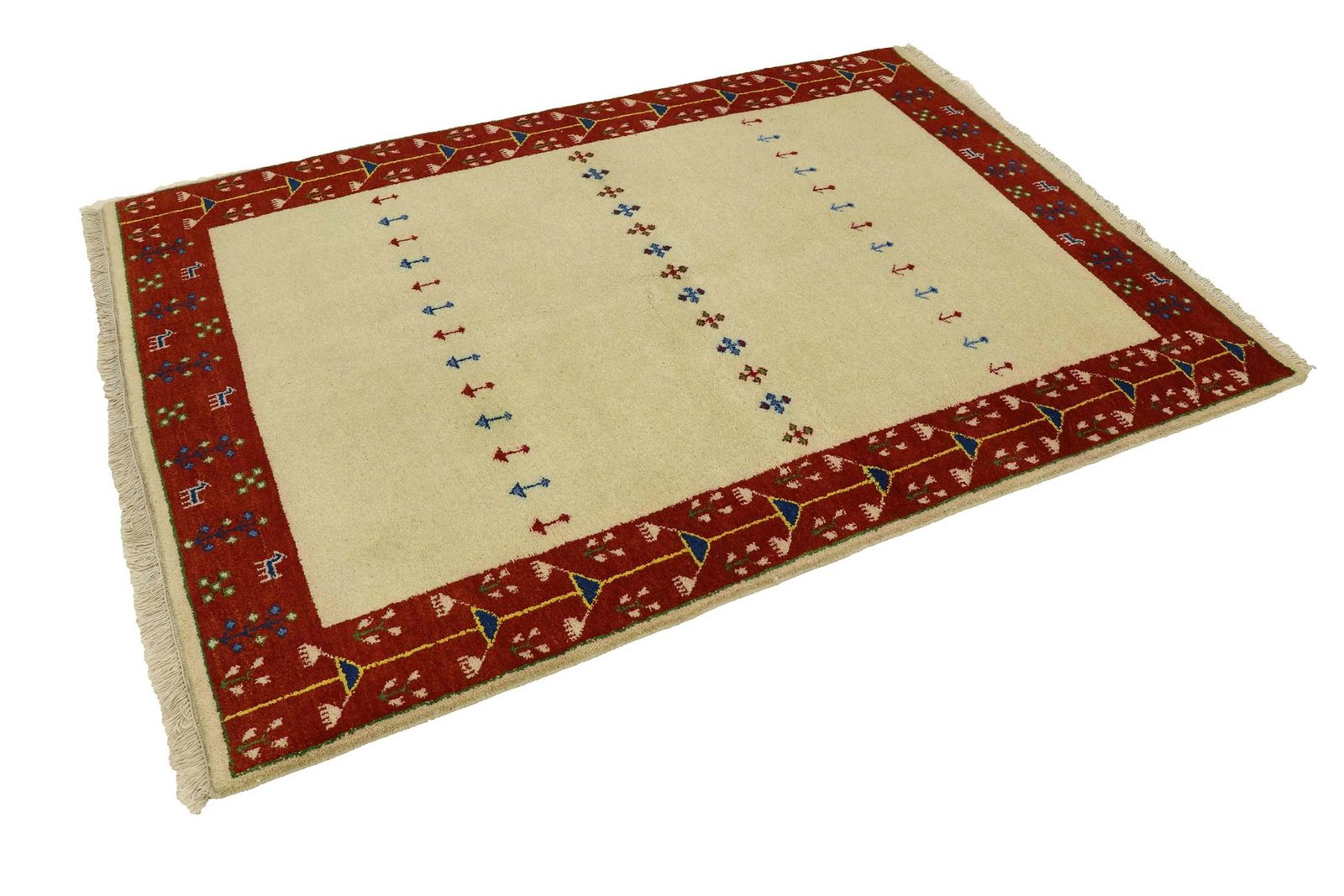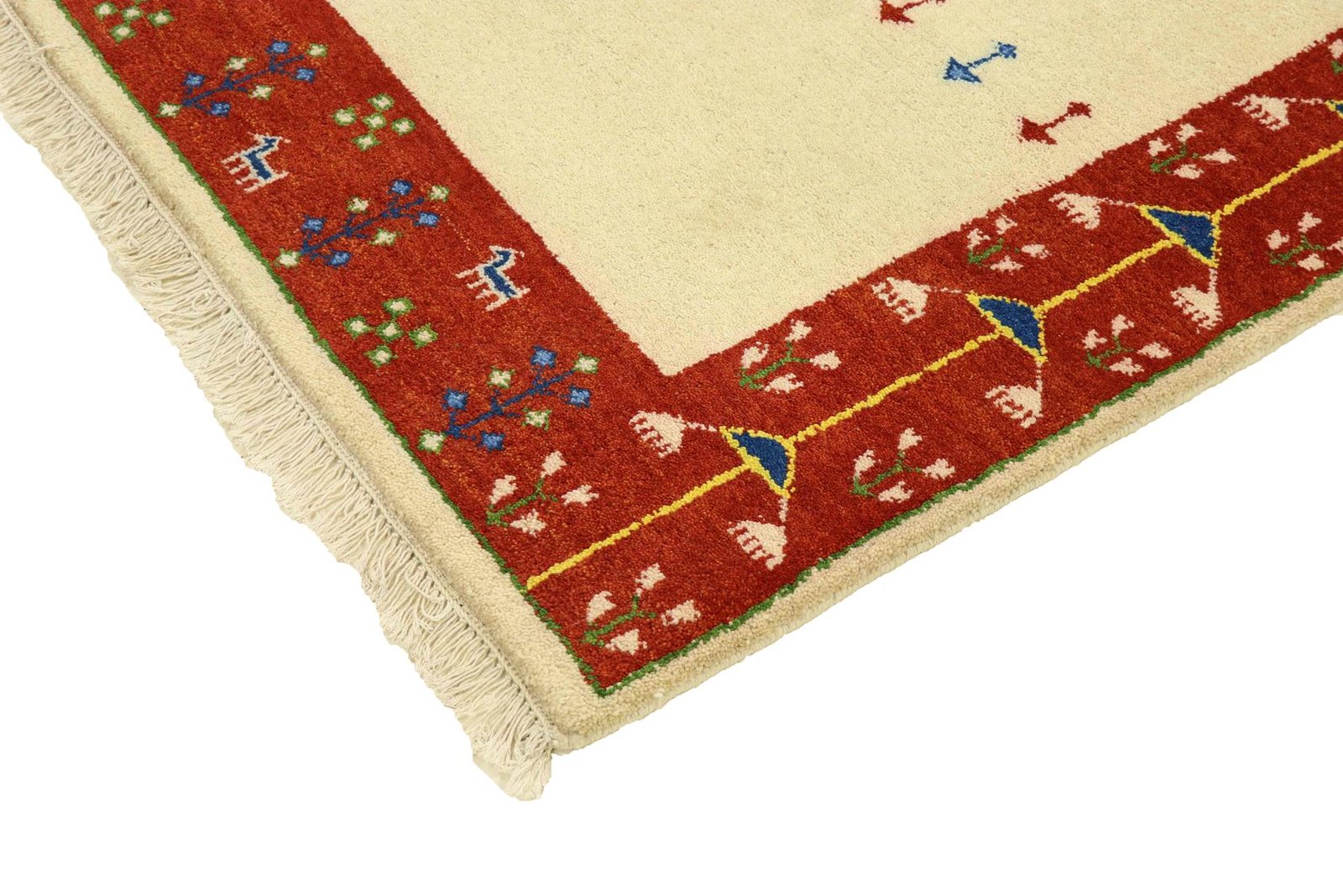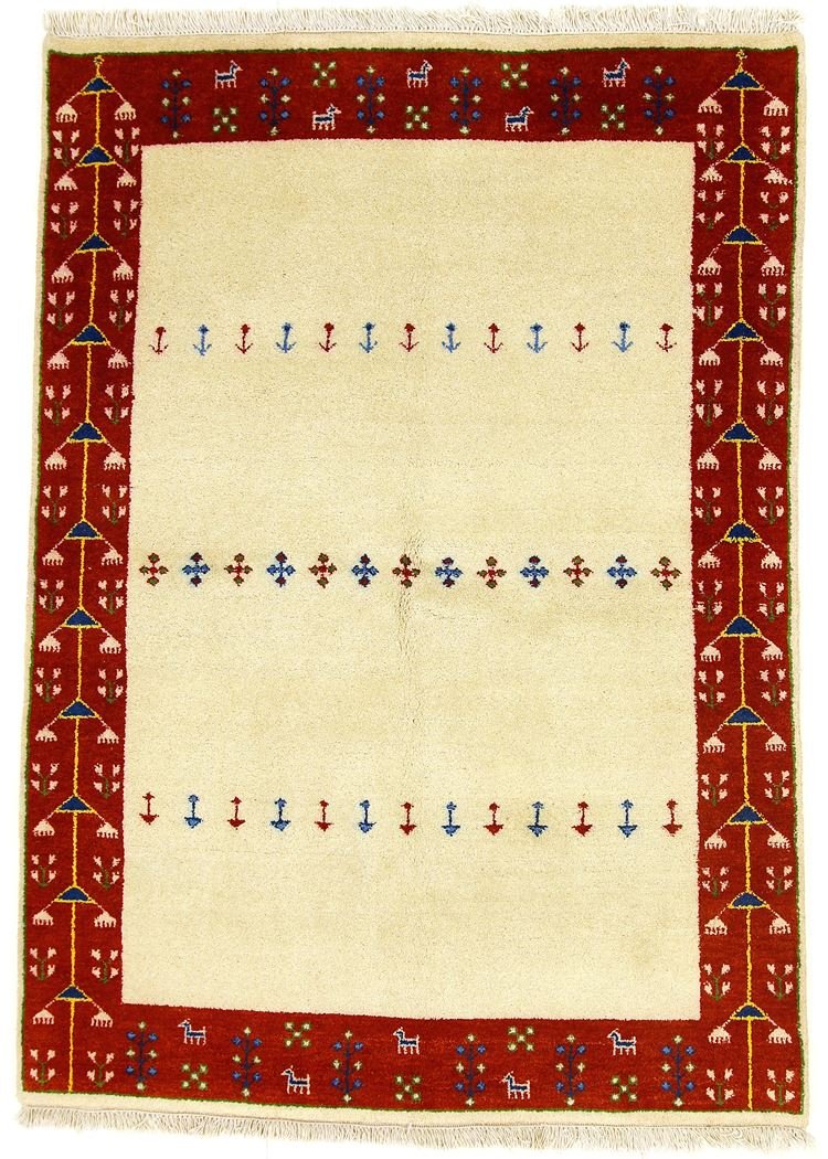 Gabbeh rugs from Iran and India are rustic knotted rugs; ‘Gabbeh’ means ‘raw’ in Persian. Popular since the early 1990s, they offer a more relaxed, folk-inspired alternative to traditional Persian rugs. They are characterised by thick, luxurious pile, diverse colours and cool, geometric or animal motifs. Mostly made of wool on wool, they vary in size from small mats to large rugs and are suitable for any room in the house.