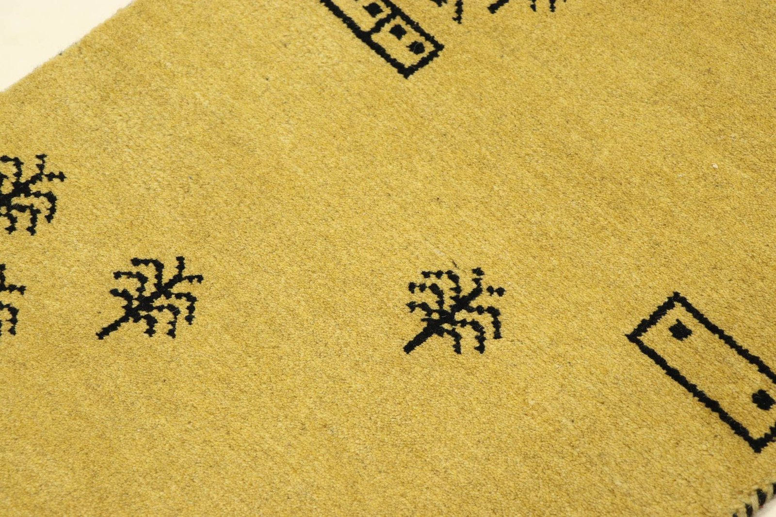 Gabbeh carpets are hand-knotted carpets from Iran and India. The name “Gabbeh” means “raw” in Farsi and describes a simple, rustic style. Since the early 1990s, they have been a popular, relaxed alternative to more formal Persian carpets. Gabbehs have a thick, luxurious pile and feature a variety of colours and cool geometric or animal motifs, abstract or representational. Usually made of wool, they vary in size from small mats to large carpets and fit into any room in the house.