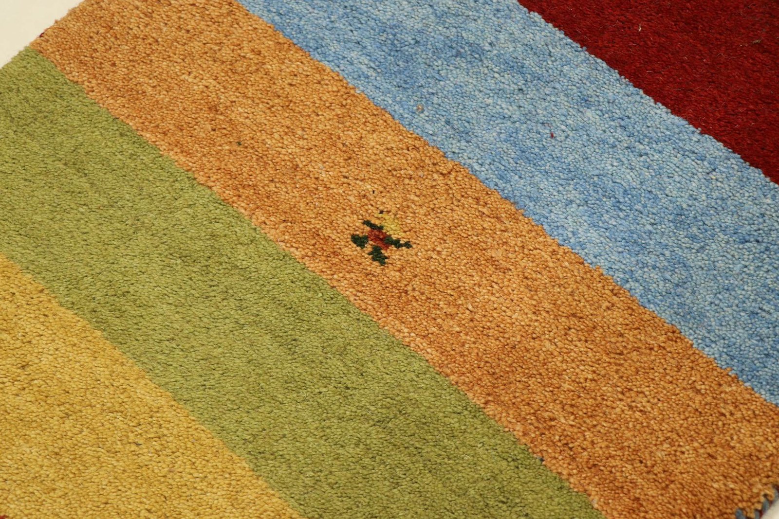 Gabbeh rugs, hand-knotted in Iran and India, mean “raw” in Farsi. A relaxed alternative to formal Persian rugs since the 1990s, they are thick-pile and luxurious, featuring many colours and cool geometric or animal motifs, abstract or representational. Mostly made of wool on wool, they vary in size from small mats to large rugs and fit into any room. Gabbehs offer a simple, rustic style that creates a relaxed atmosphere, in contrast to traditional rugs, which are often associated with formal interior design.