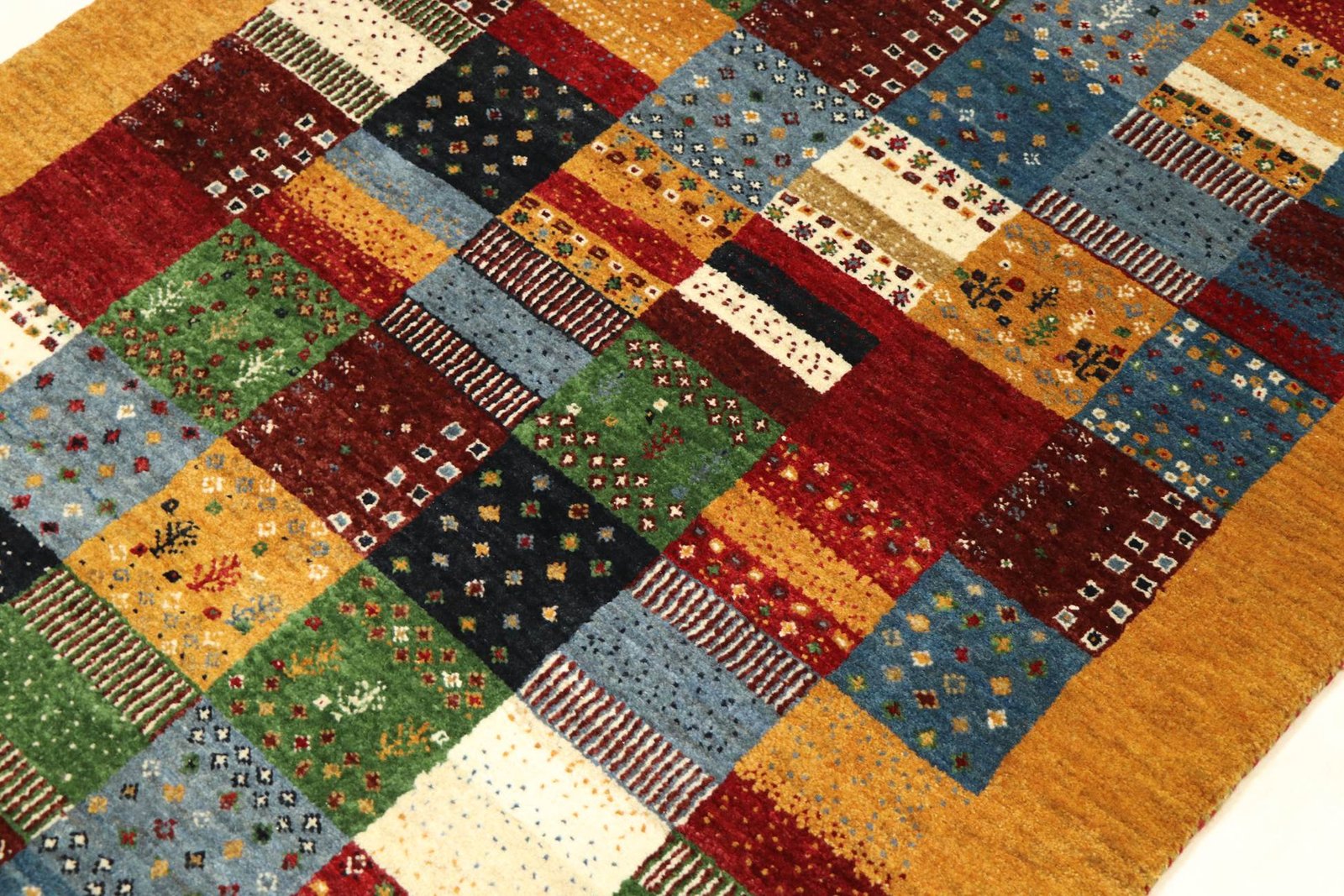Lori-Baff carpets, hand-knotted in Iran and India, are “very fine Gabbeh” in Persian and represent a simple, rustic carpet style. Popular since the early 1990s, they offer a more relaxed alternative to traditional Persian carpets, which are often associated with formal interior design. Lori Baff carpets have a thick, luxurious pile, a variety of colours and a cool, geometric pattern. The motifs can be abstract or representational, often depicting animals or people. Made from fine wool, they vary in size from small mats to large carpets and fit into any interior.