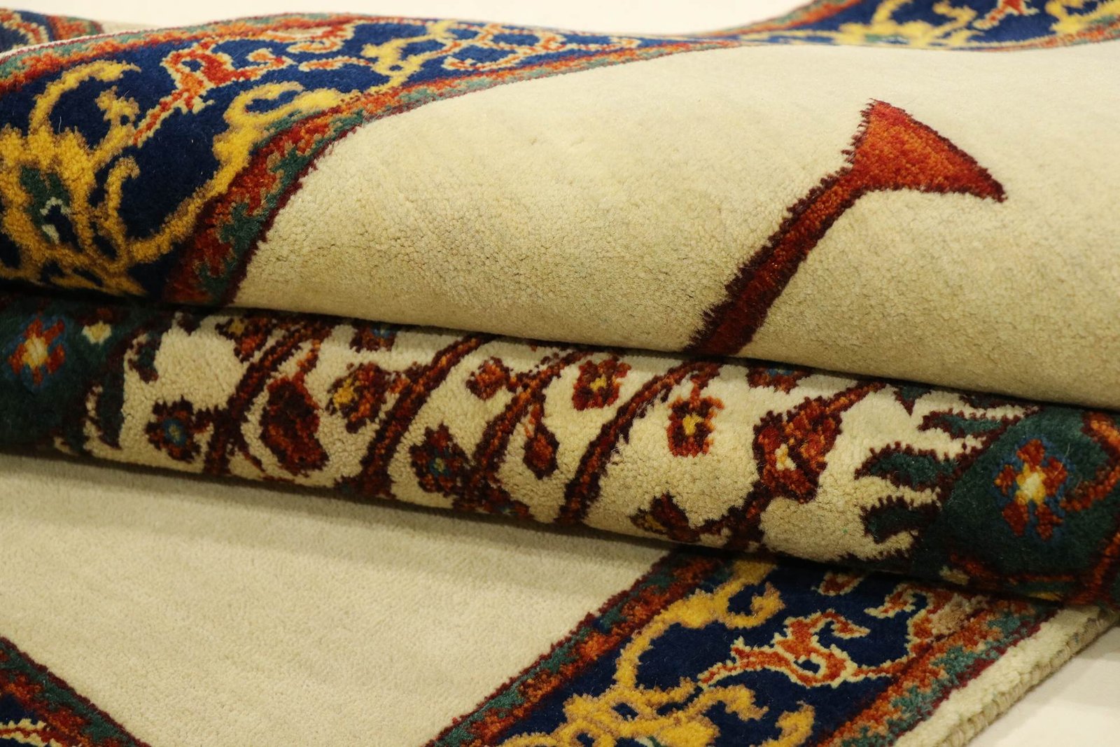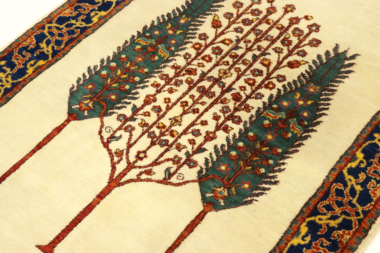 Lori-Baff rugs, hand-knotted in Iran and India, mean “very fine Gabbeh” in Persian and embody a simple, rustic style. Popular since the 1990s, they offer a more relaxed alternative to traditional Persian rugs, often associated with formal interior design. These rugs have a thick, luxurious pile, diverse colours and a cool, geometric pattern, often with abstract or figurative motifs such as animals or people. Made from fine wool, they vary in size from small mats to large rugs and fit into any interior.