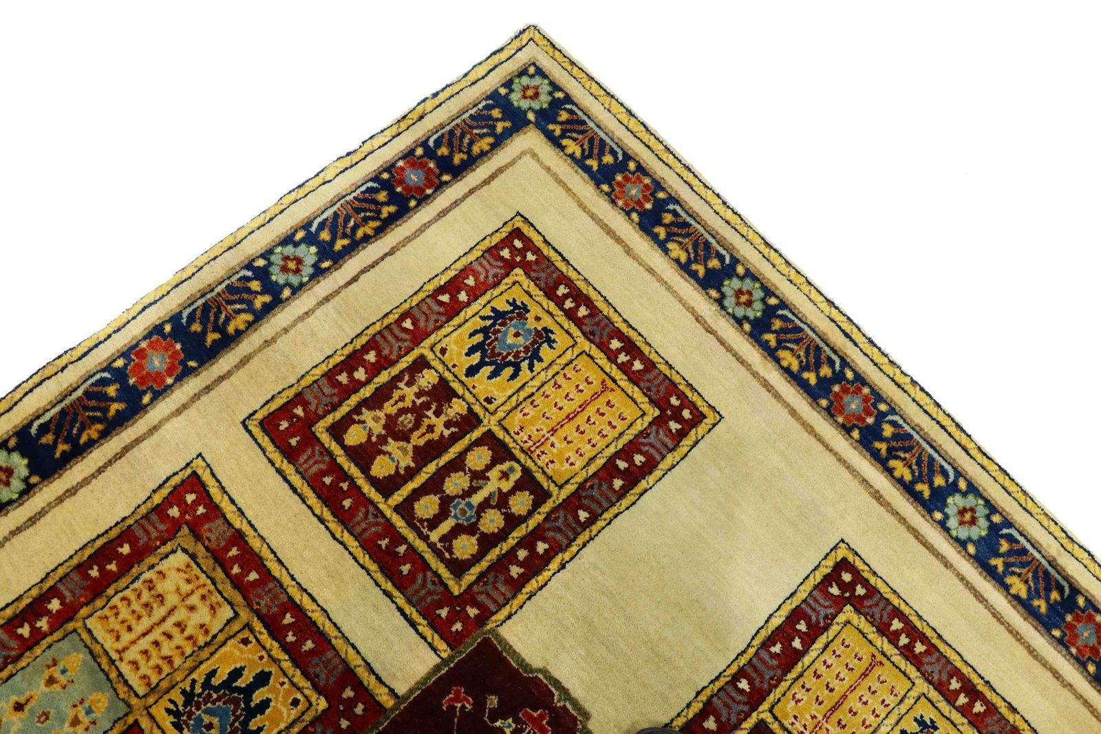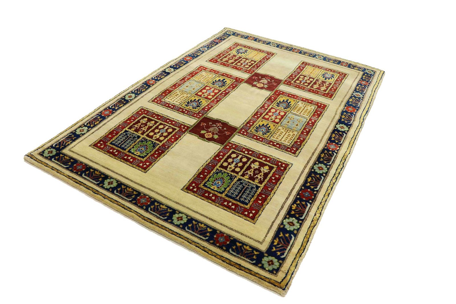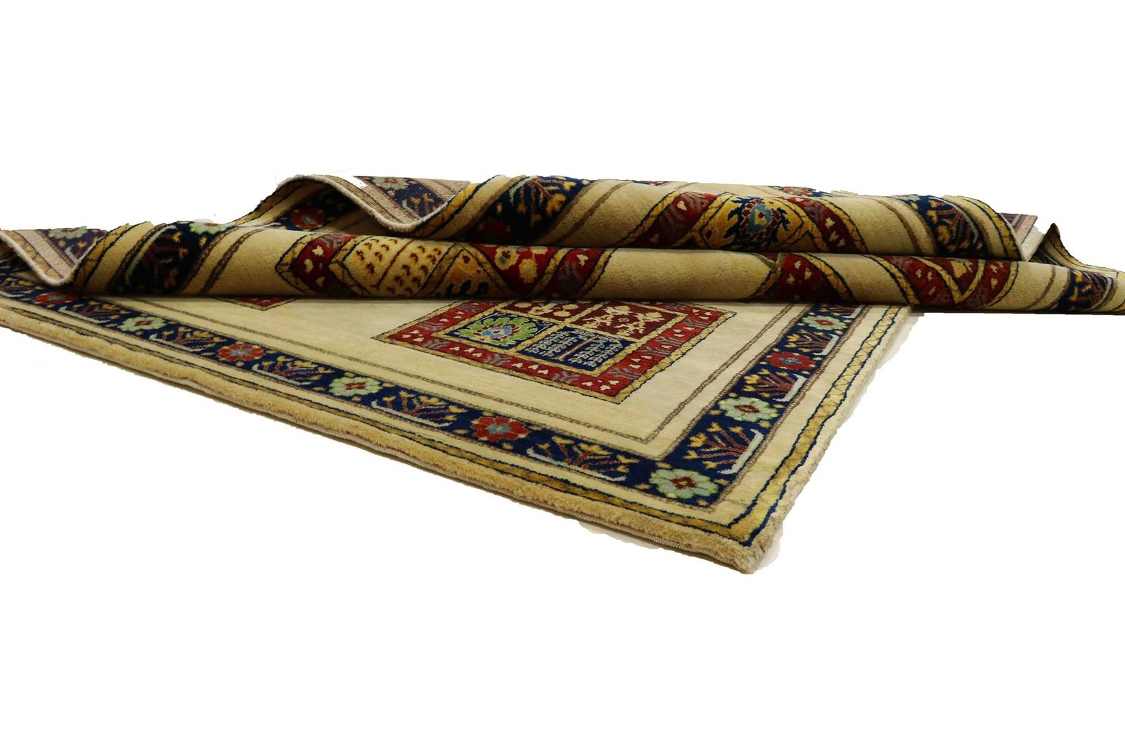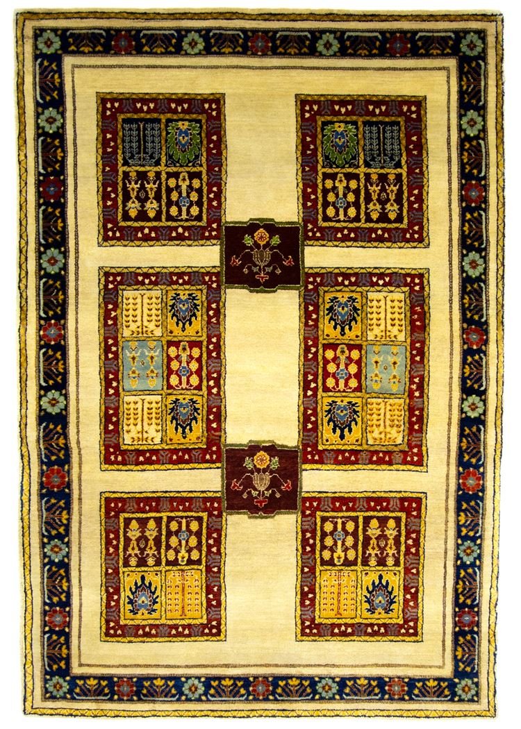 Lori-Baff carpets, hand-knotted in Iran and India, mean “very fine Gabbeh” in Persian. Popular since the early 1990s, they offer a relaxed alternative to traditional Persian carpets. These carpets are characterised by their rustic style, thick pile, diverse colours and cool geometric patterns. They often feature abstract or figurative motifs such as animals or people and are made of fine wool. Available in various sizes, from small mats to large rugs, they fit into any interior.