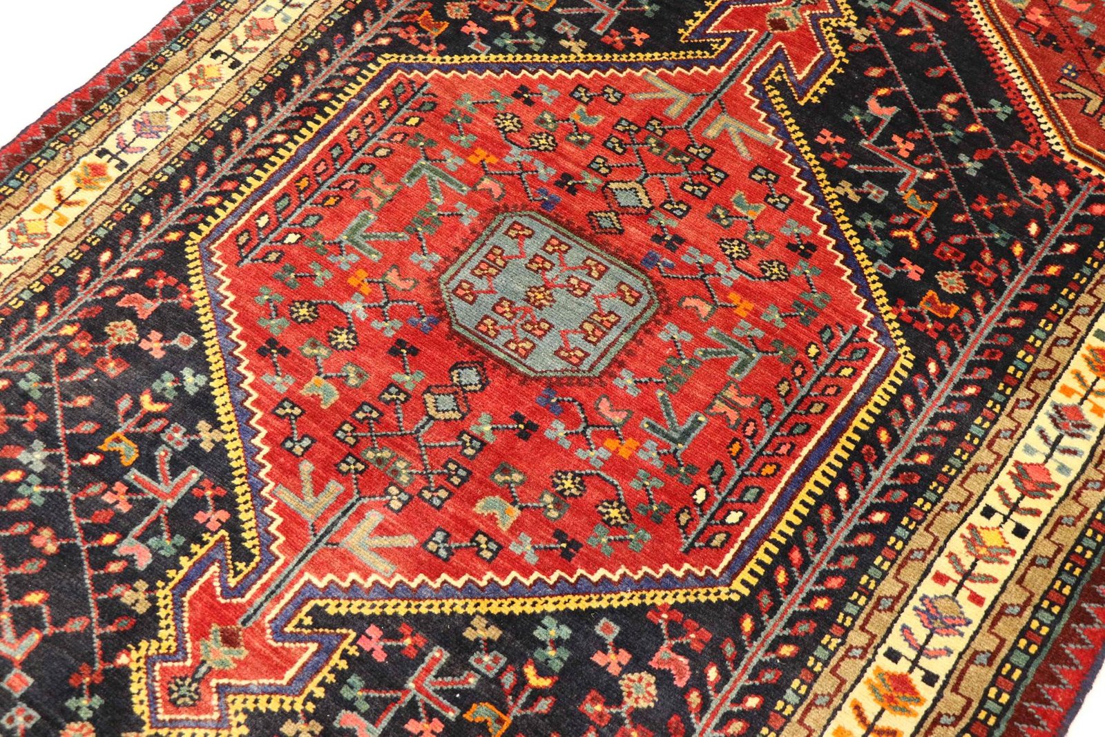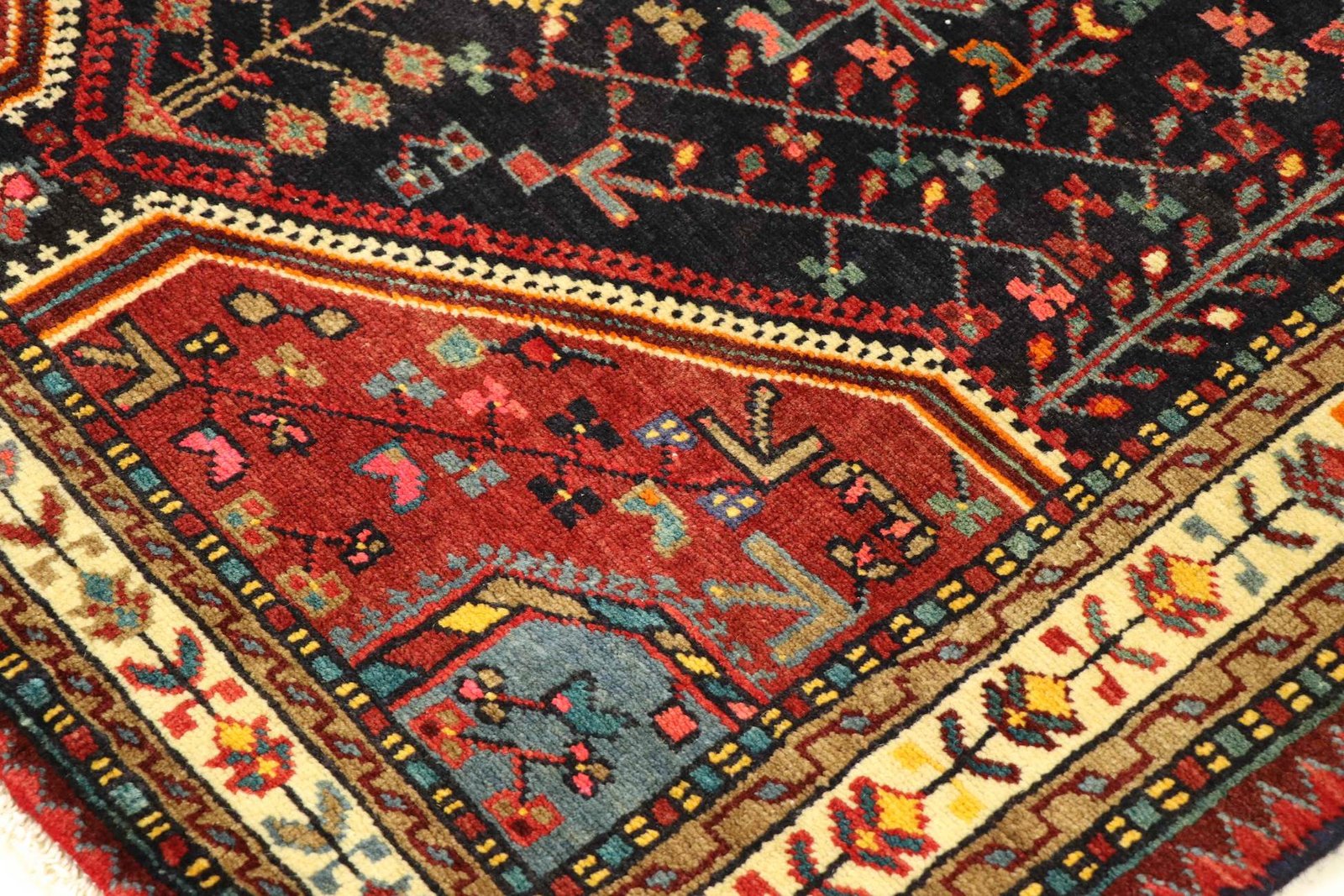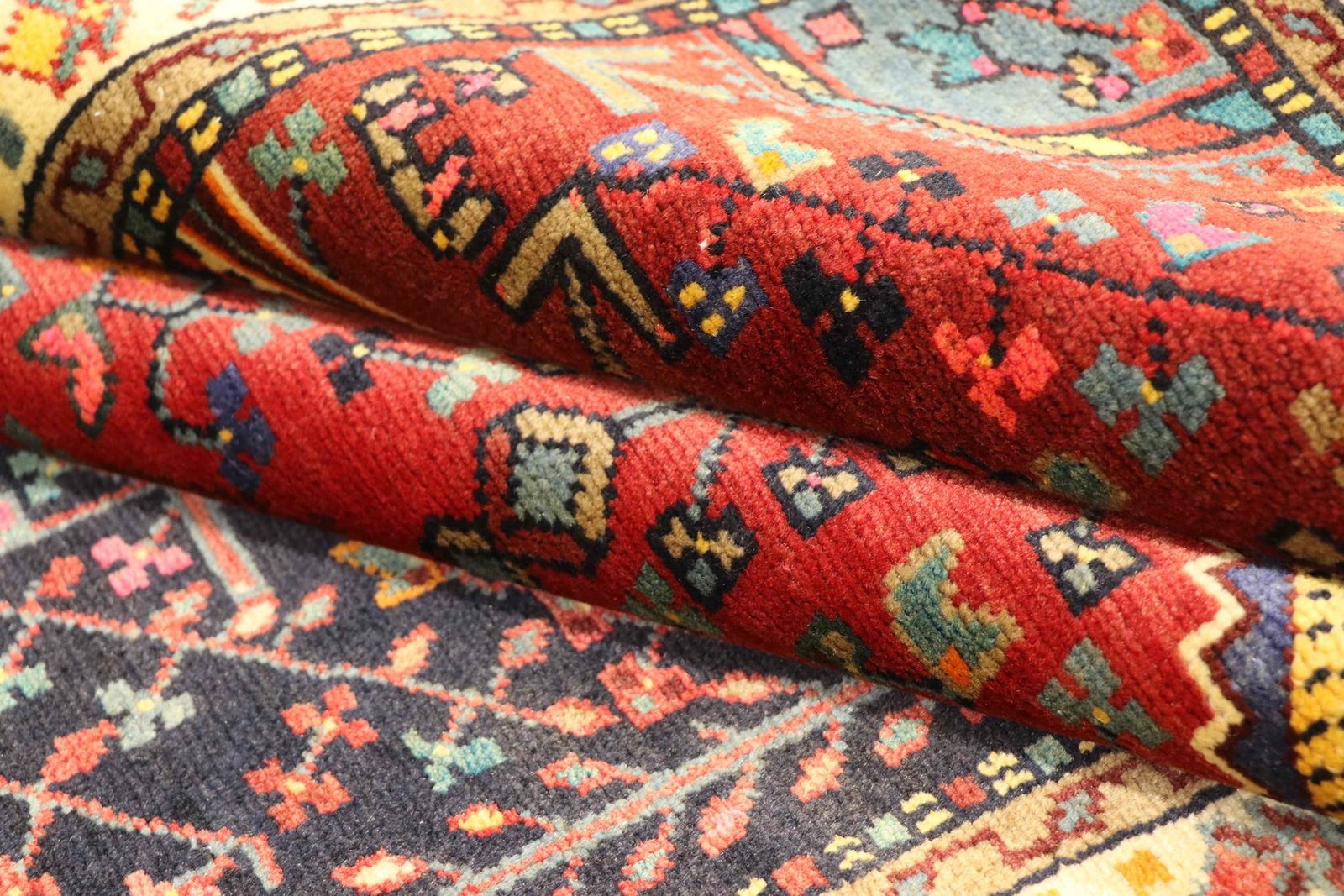 Gharaje is one of the most beautiful nomadic rugs from the mountains, known for its geometric patterns and light colours. These rugs are traditionally knotted in the Orient, often from pure wool (“wool on wool”), with natural colours and traditional patterns. They are among the most sought-after Oriental rugs in the Orient and Europe. The simple patchwork and subtle colour accents make them particularly adaptable to current interior design trends and preferences.