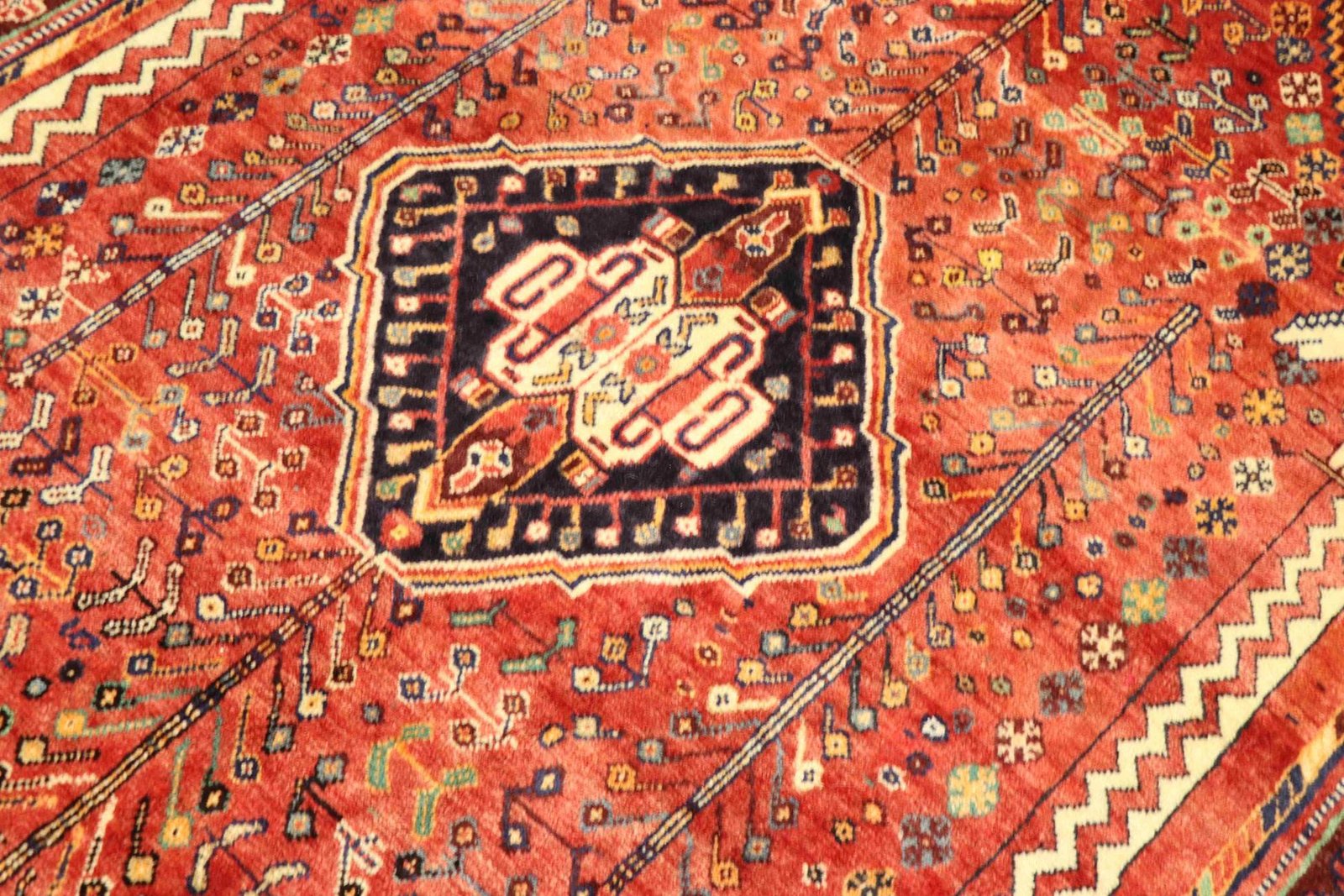 Ghashghai carpets are among the finest nomadic carpets in Iran, renowned for their beautiful colours and patterns. They are traditionally knotted in the Orient from pure wool (“wool on wool”), using time-honoured patterns and natural colours. They are particularly sought after in the Orient and Europe thanks to their simple patchwork technique and skilfully applied colour accents. These carpets can be perfectly combined with current interior design trends and preferences, meaning that they not only serve as floor decorations, but also represent cultural tradition and craftsmanship.