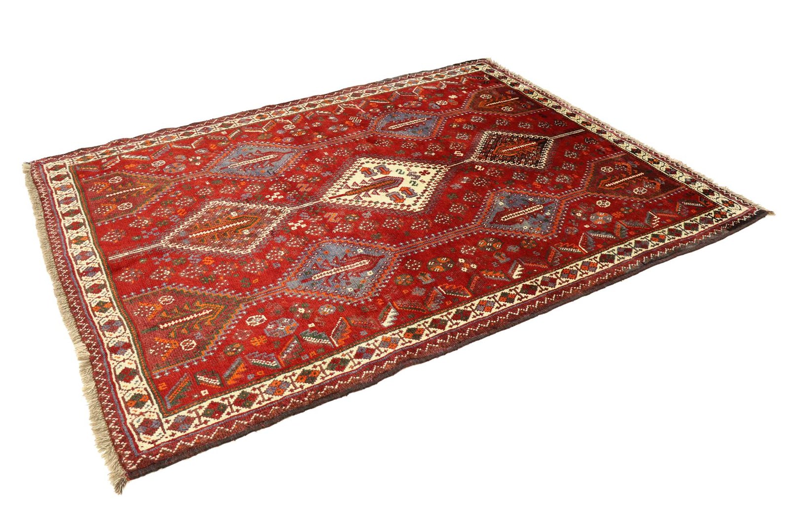 Ghashghai carpets are known among the best nomadic carpets in Iran for their beautiful colours and patterns. In the Orient, they have been hand-knotted for many years from pure wool (“wool on wool”) with traditional patterns and natural colours. These carpets are particularly sought after in the Orient and Europe and are characterised by their simple weaving and skilfully used colour accents. They can be perfectly integrated into modern interiors by picking up on and complementing current trends and preferences.