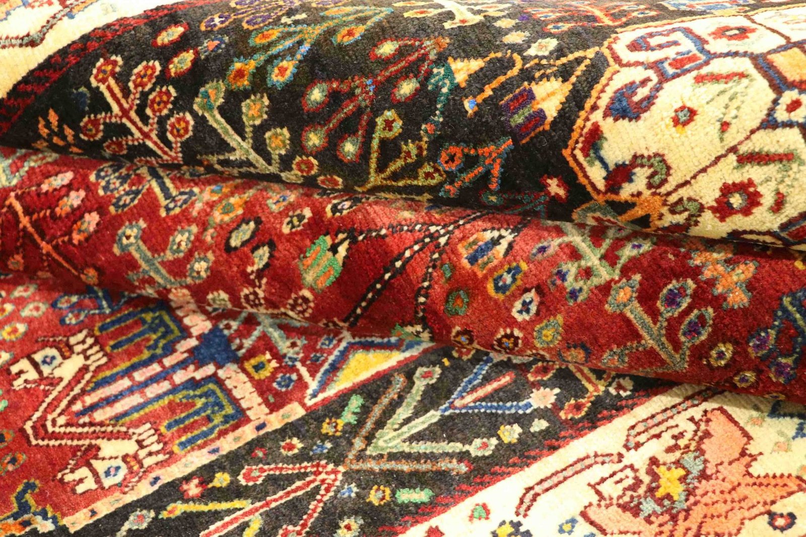 Ghashghai carpets, known as outstanding nomadic carpets in Iran, are characterised by their magnificent colours and patterns. These oriental carpets are traditionally made from pure wool (“wool on wool”), with long-standing designs and natural colours. They are highly sought after in the Orient and Europe and, thanks to their simple repair techniques and skilful colouring, are ideal for modern interiors. Their high quality and adaptability to current design trends make them a preferred choice for lovers of authentic craftsmanship and style-conscious interior designers worldwide.