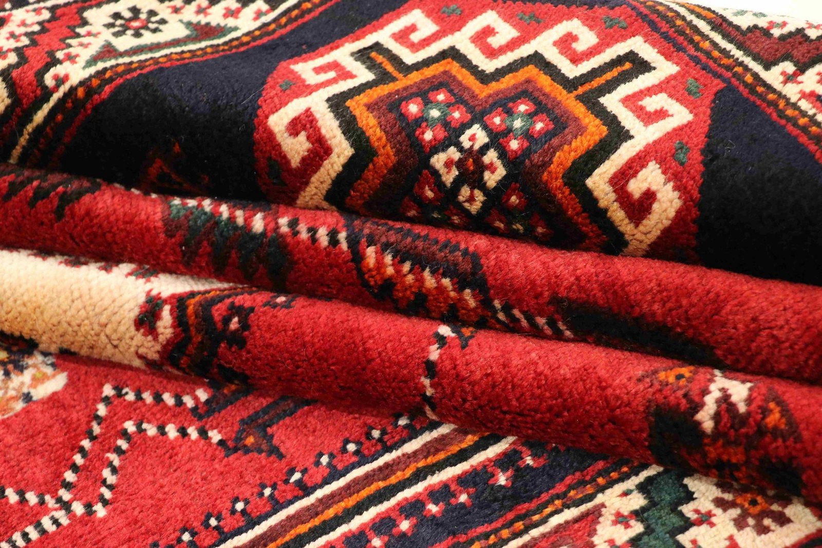 Ghashghai carpets are among the finest nomadic carpets in Iran, renowned for their beautiful colours and patterns. Traditionally, they are made in the Orient from pure wool (“wool on wool”), using durable patterns and natural colours. These carpets are particularly sought after in the Orient and Europe among all Oriental carpets. Their simple weaving technique and skilful use of colour accents make them ideal for modern interiors. Ghashghai carpets fit perfectly with current design preferences and trends, making them a popular choice for contemporary living spaces.