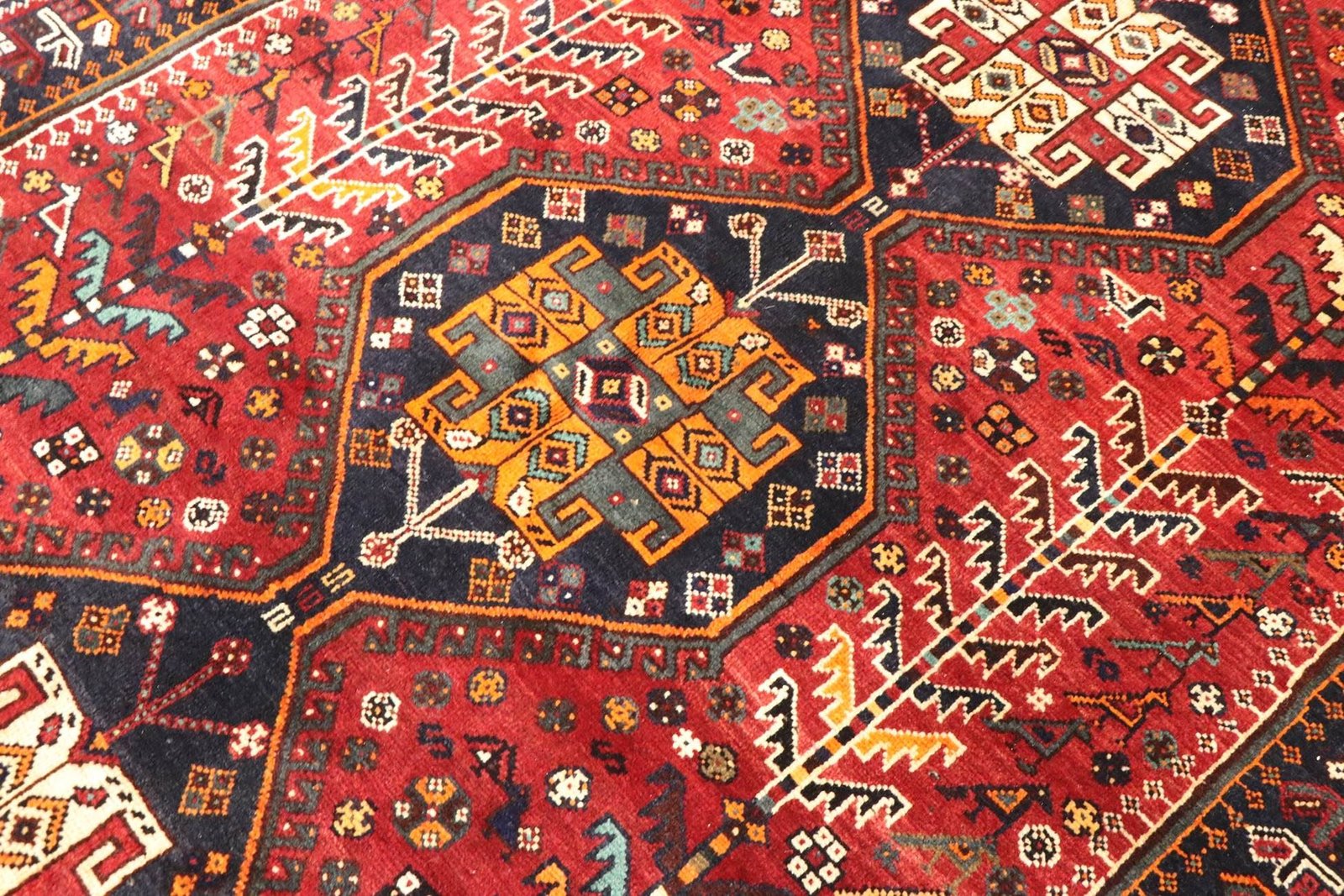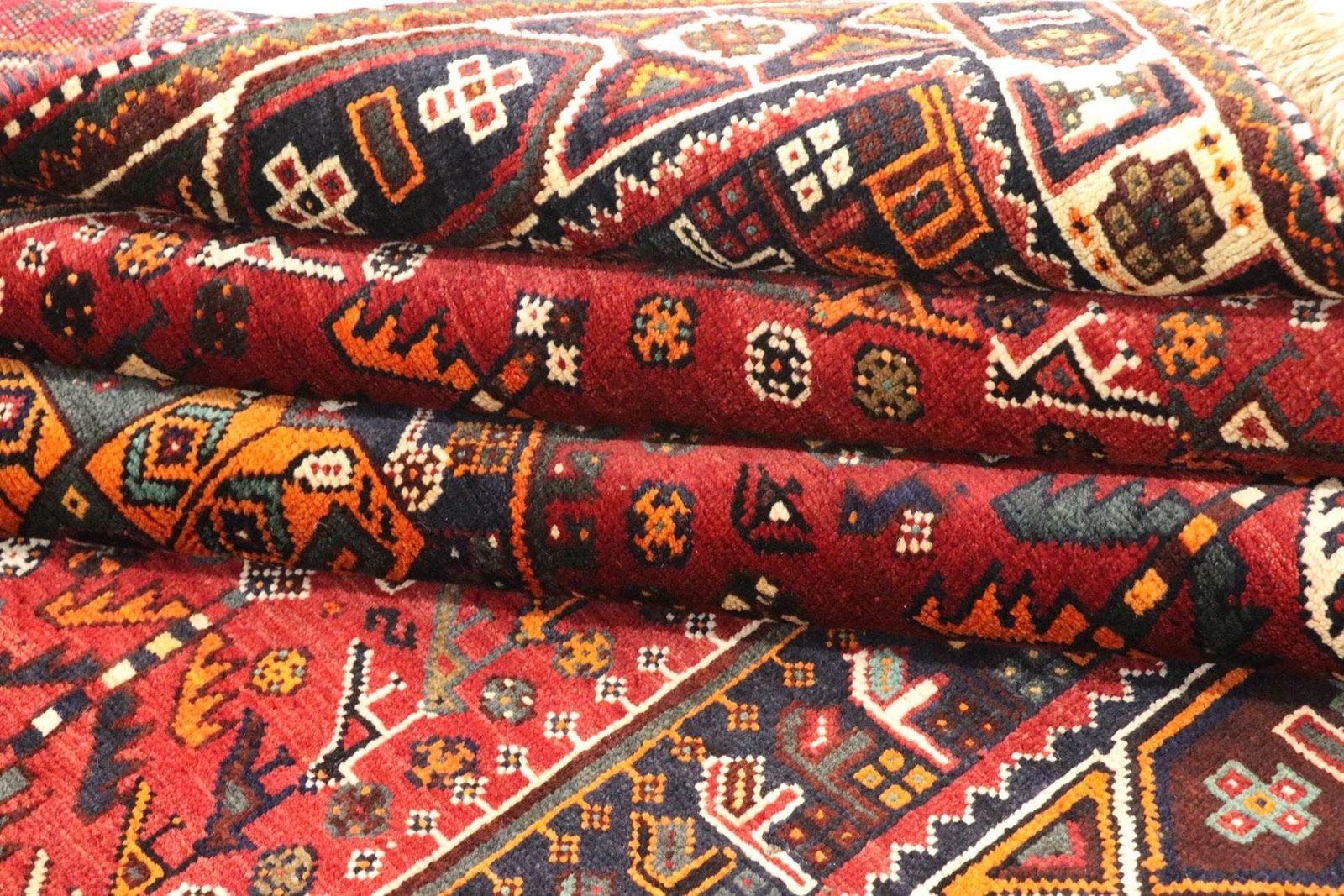 Ghashghai carpets are among the finest nomadic carpets in Iran, renowned for their beautiful colours and patterns. Traditionally made from pure wool (“wool on wool”) in the Orient, they are characterised by long-standing patterns and natural colours. Particularly sought after in the Orient and Europe, they combine simple patchwork techniques with skilful colour accents. This makes them ideal for contemporary interiors and in line with current trends and design preferences. The quality and craftsmanship of Ghashghai carpets make them a sought-after item for lovers of traditional textiles worldwide.