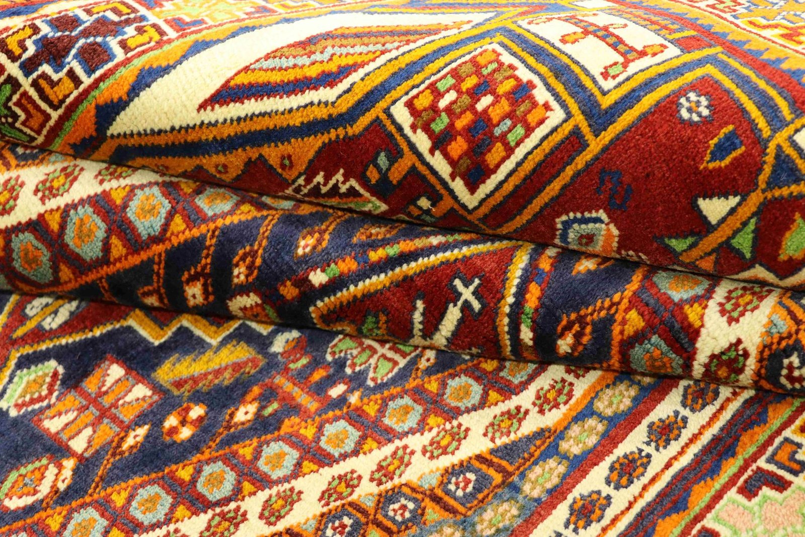 Ghashghai carpets are among the most outstanding nomadic carpets in Iran, famous for their rich colours and intricate patterns. Traditionally made from pure wool (“wool on wool”) with long-standing designs and natural colours, they are particularly sought after in the Orient and Europe. The simple patchwork technique and skilful use of colour accents make them ideal for modern interiors, perfectly matching current trends and design preferences. Ghashghai carpets represent a masterpiece of traditional craftsmanship, embodying both historical heritage and timeless elegance, and enjoy a unique reputation in the world of Oriental carpets.