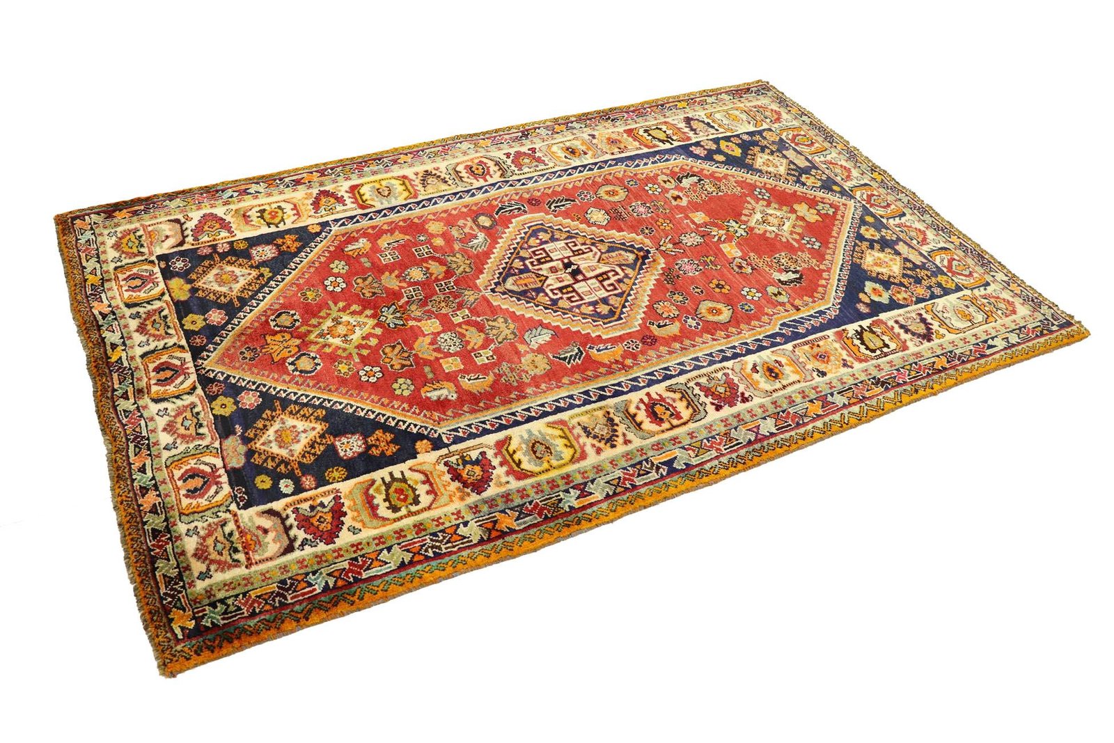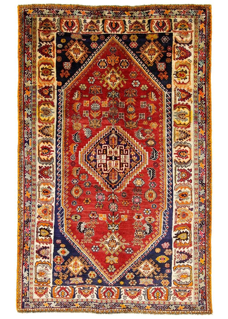 Ghashghai carpets are among the finest nomadic carpets in Iran, renowned for their beautiful colours and patterns. Traditionally made from pure wool (“wool on wool”) with long-standing patterns and natural colours, they are particularly sought after in the Orient and Europe. The simplicity of their patchwork techniques and skilful use of colour accents make them ideal for modern interiors, perfectly matching current design preferences and trends. These carpets combine traditional craftsmanship with aesthetic refinement and are a testament to the cultural depth and craftsmanship of the Ghashghai nomads.