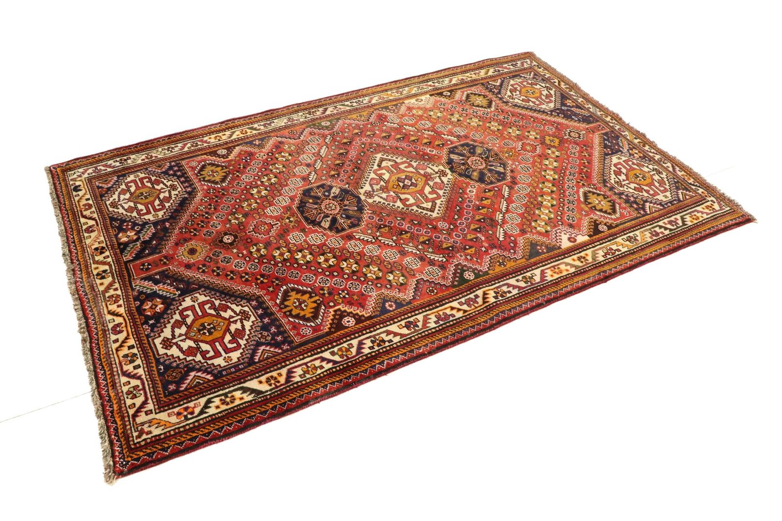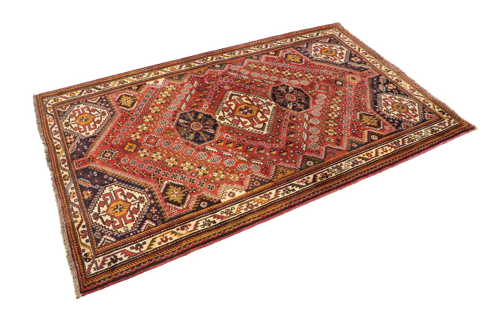 Ghashghai carpets, outstanding among Iran’s nomadic carpets, are famous for their magnificent colours and patterns. They are traditionally made in the Oriental region from pure wool (“wool on wool”) and are characterised by long-standing designs and natural colours. Particularly sought after in the Orient and Europe, they combine simple patchwork techniques with skilful colour accents, making them ideal for modern interiors. Their adaptability to current trends and design preferences underlines their timeless beauty and cultural significance.
