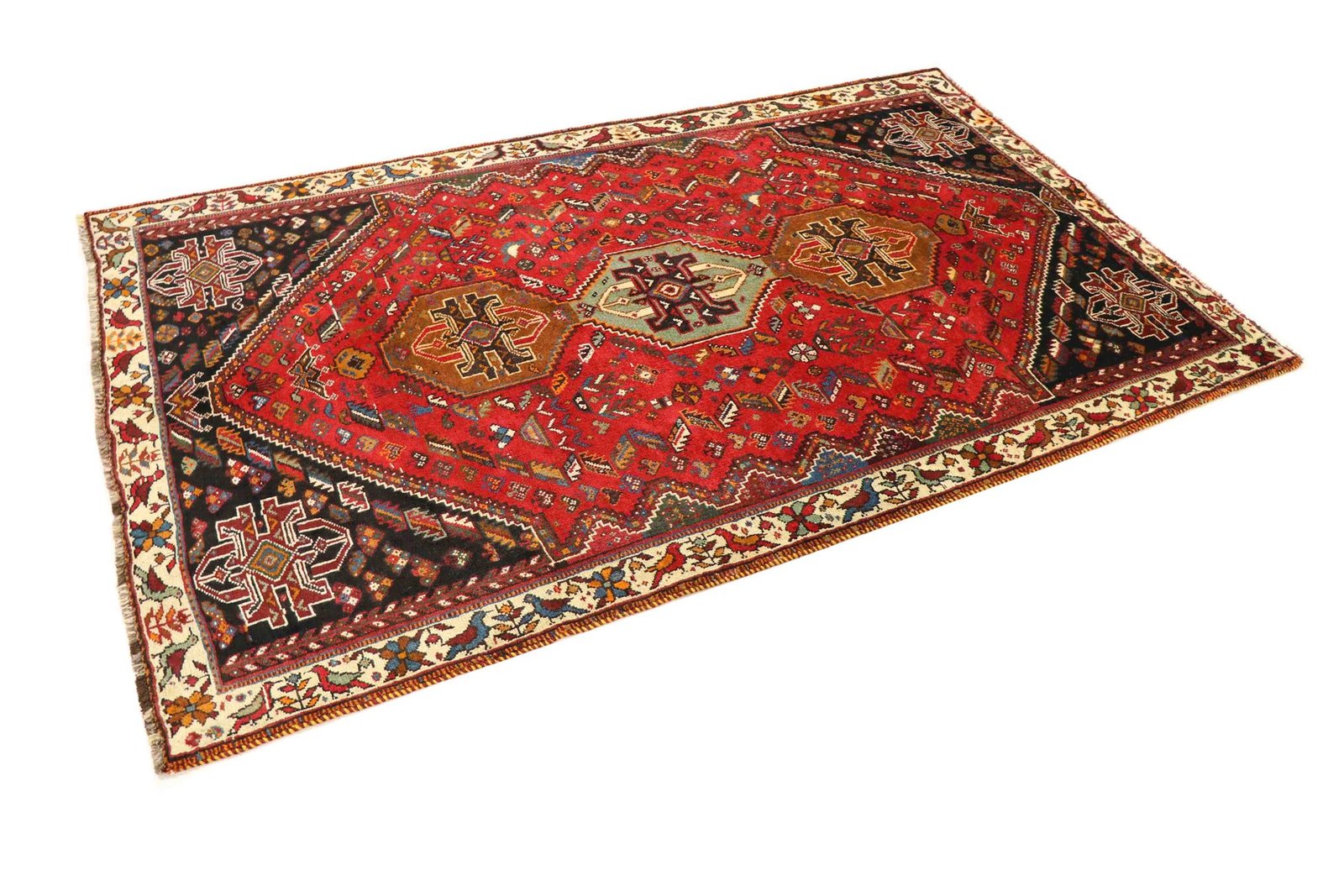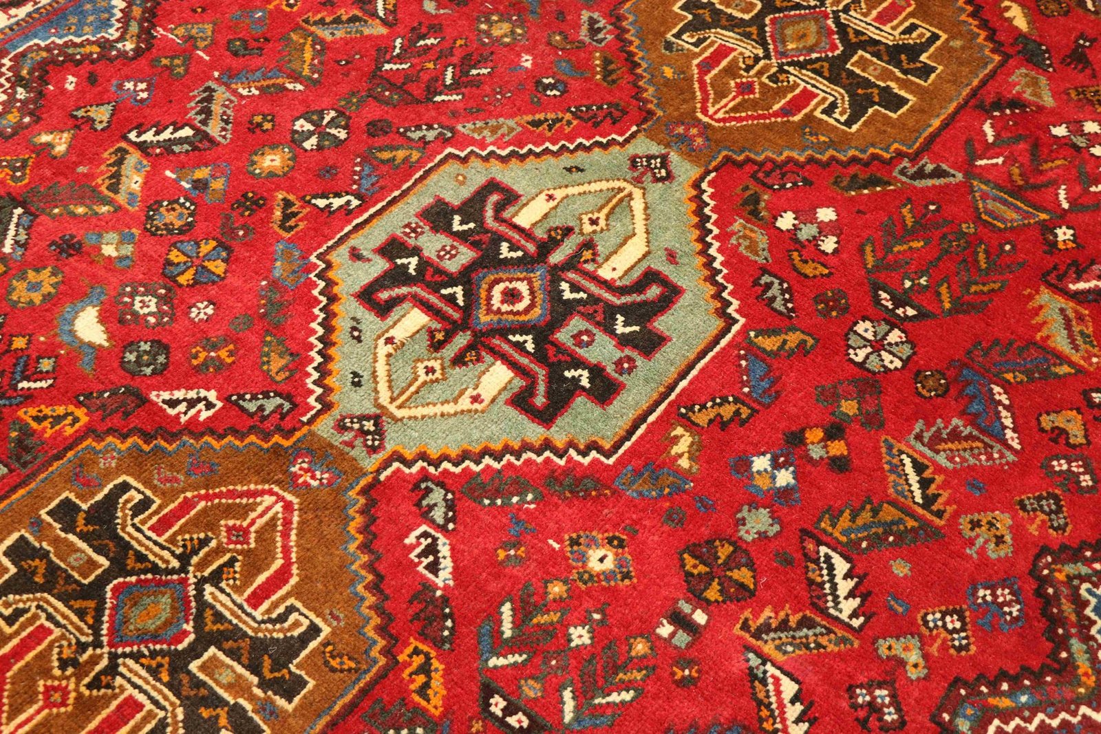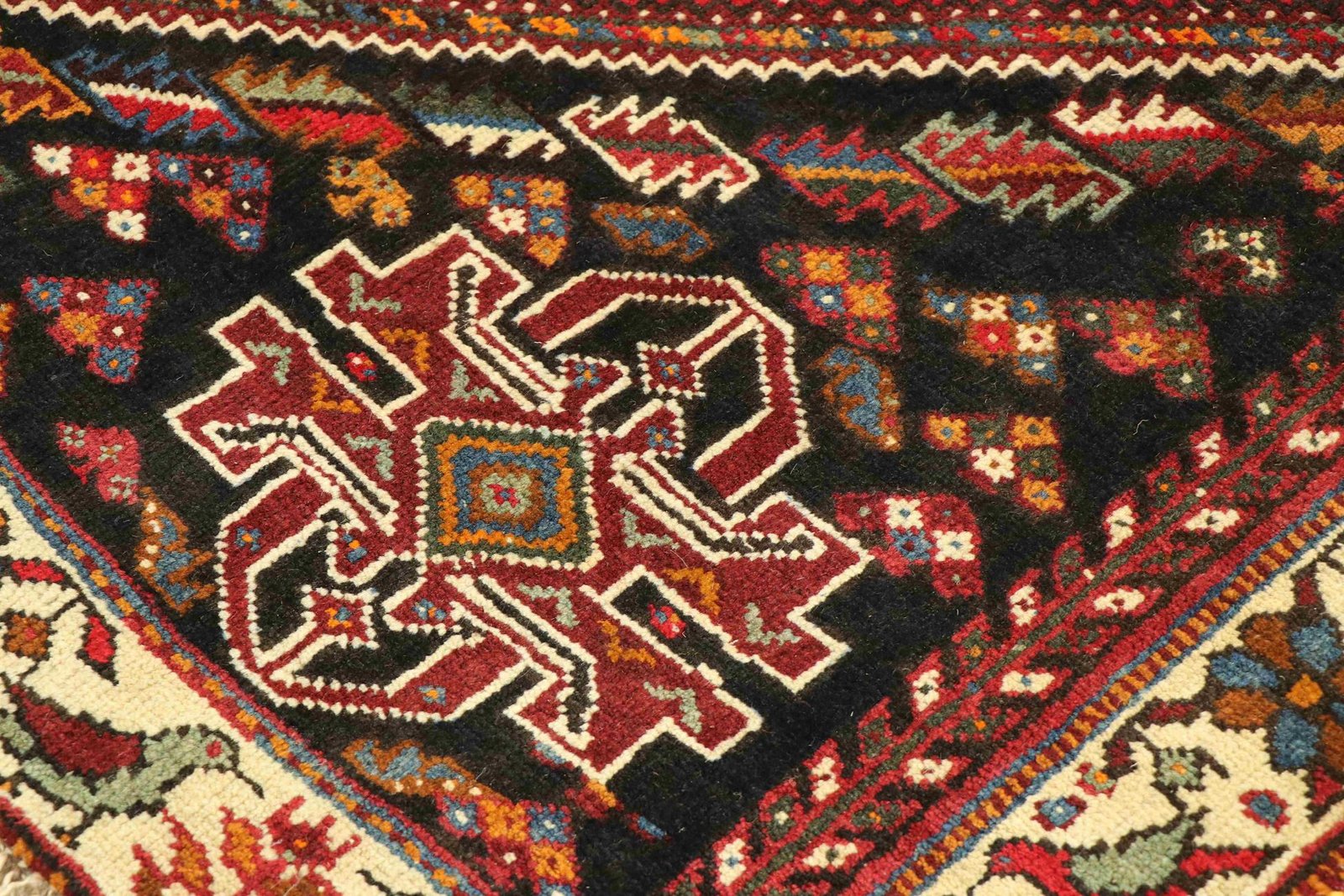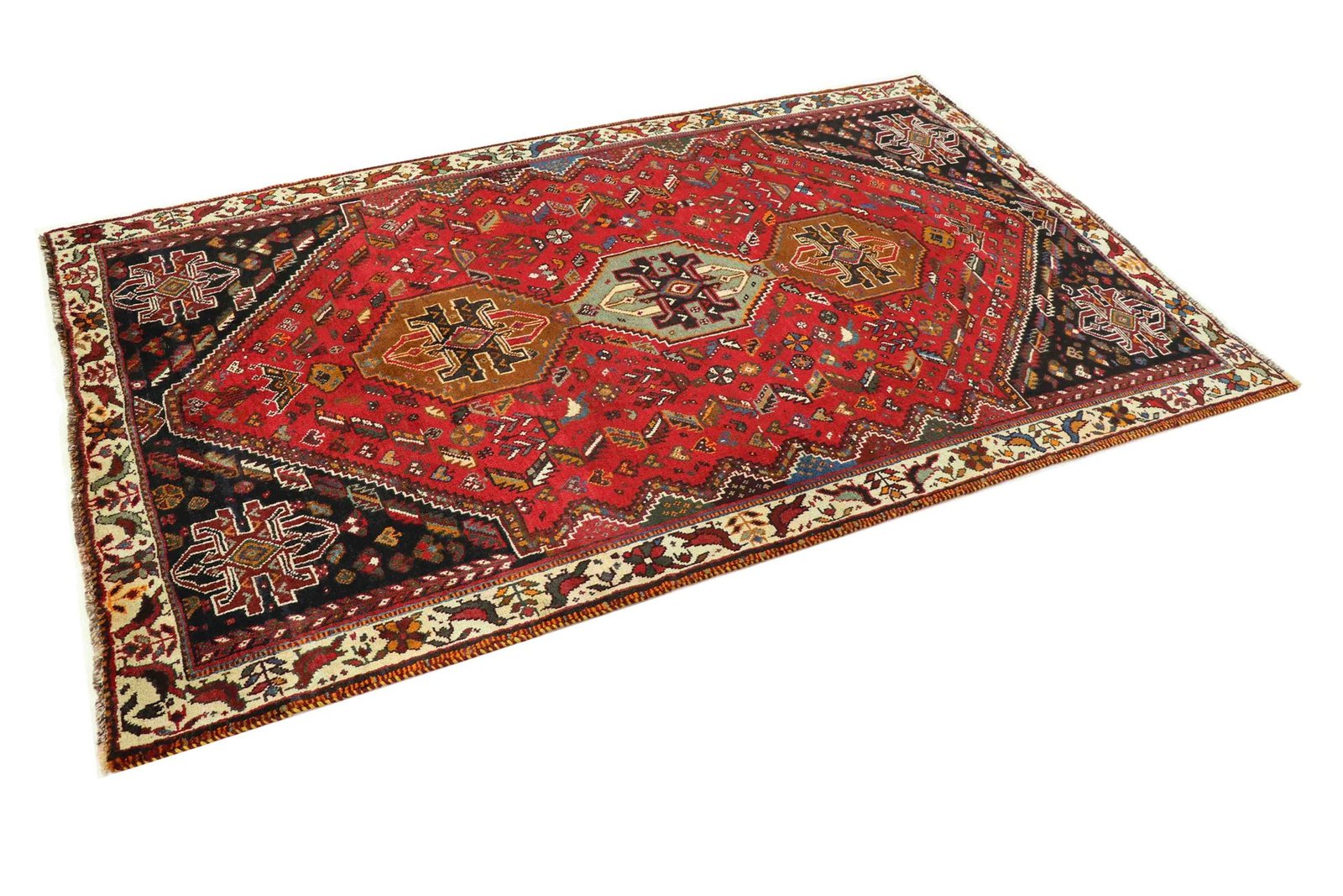 Ghashghai carpets, highly acclaimed nomadic carpets from Iran, are characterised by their brilliant colours and patterns. Traditionally hand-woven from pure wool (“wool on wool”), they feature centuries-old designs and natural colouring. Sought after in the Orient and Europe, they combine simple patchwork techniques with artistic colour accents, ideal for modern interiors and contemporary design aesthetics.