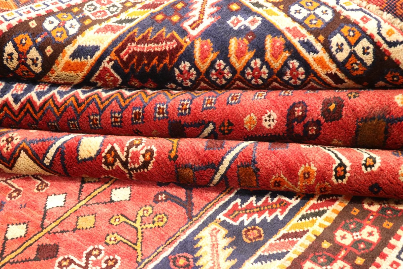 Ghashghai carpets from Iran are among the most exquisite nomadic carpets. They are known for their magnificent colours and patterns, made from pure wool using the “wool-on-wool” technique. These carpets are characterised by long-standing designs and natural colours, making them highly sought after in the Orient and Europe. Their ease of repair and skilful use of colour accents make them ideal for modern interiors, perfectly suited to current trends and design aesthetics.
